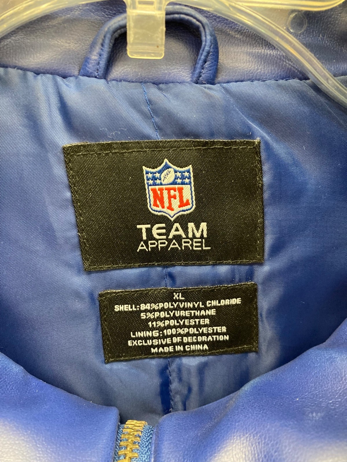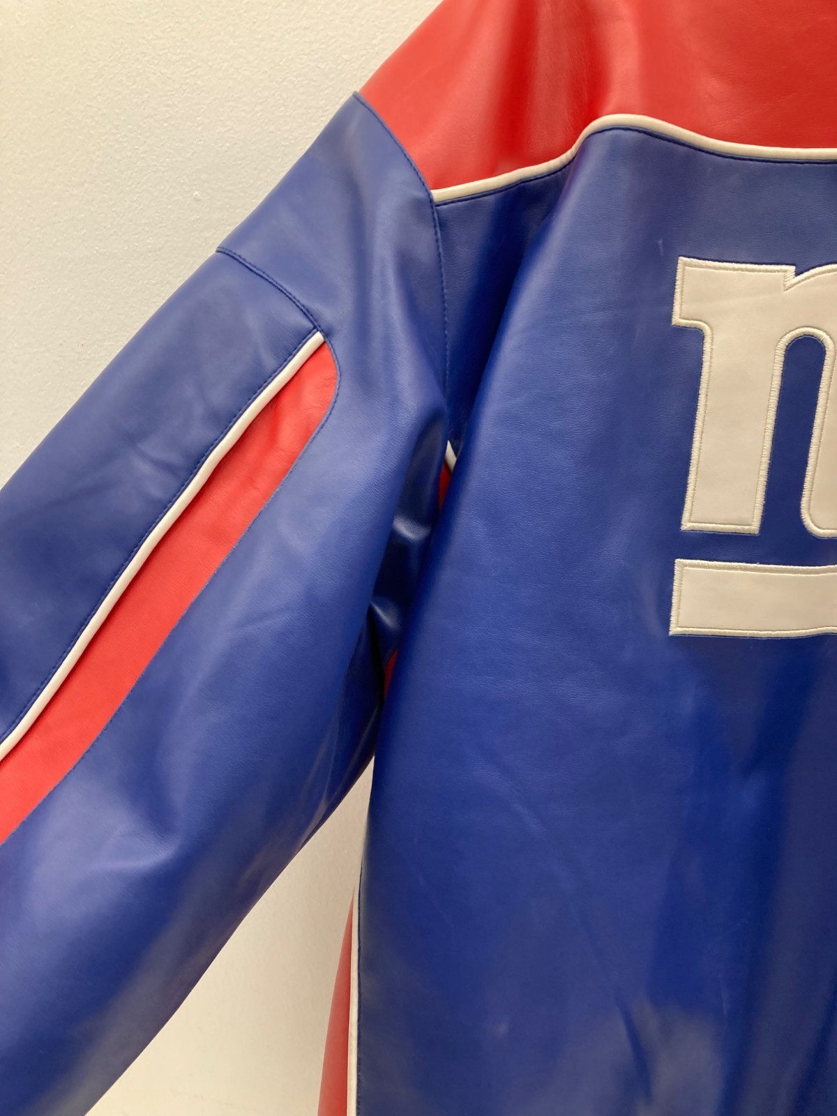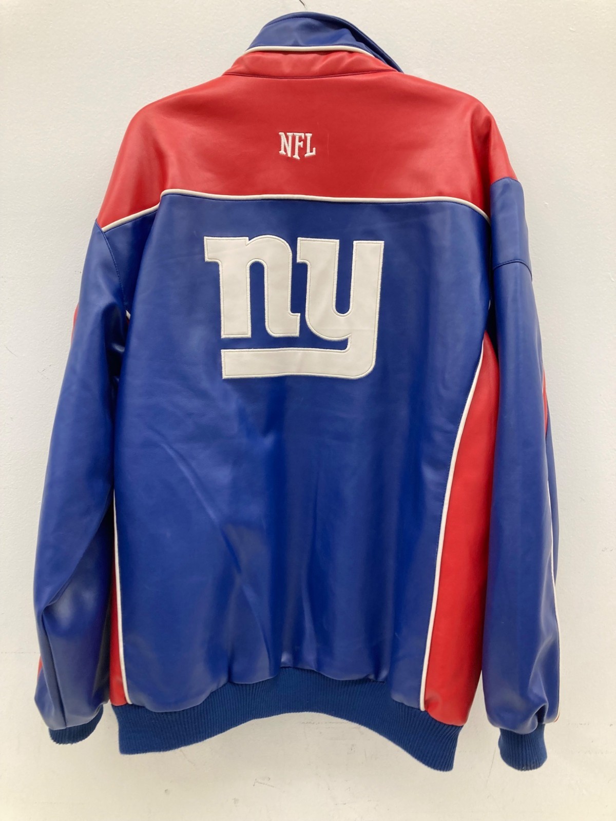 NFL Team Apparel New York Giants Faux Leather Zip-Up Bomber Jacket Size XL