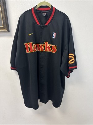 Nike Atlanta Hawks Shirt Mens 2XL Black NBA Basketball Button Jersey Red Yellow