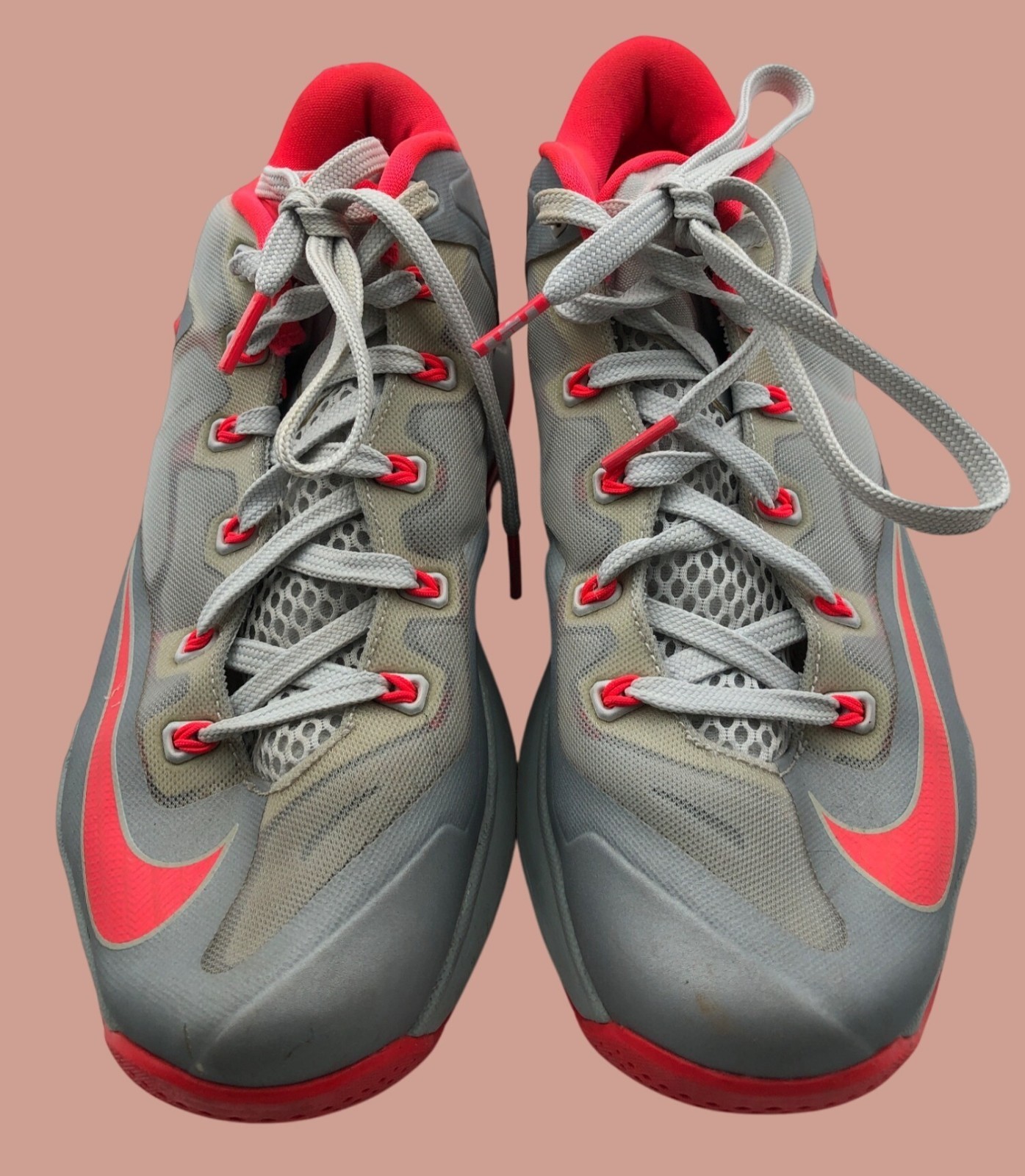Nike Mens LeBron 11 Low 'Base Grey Laser Crimson' 642849-001- Size 8