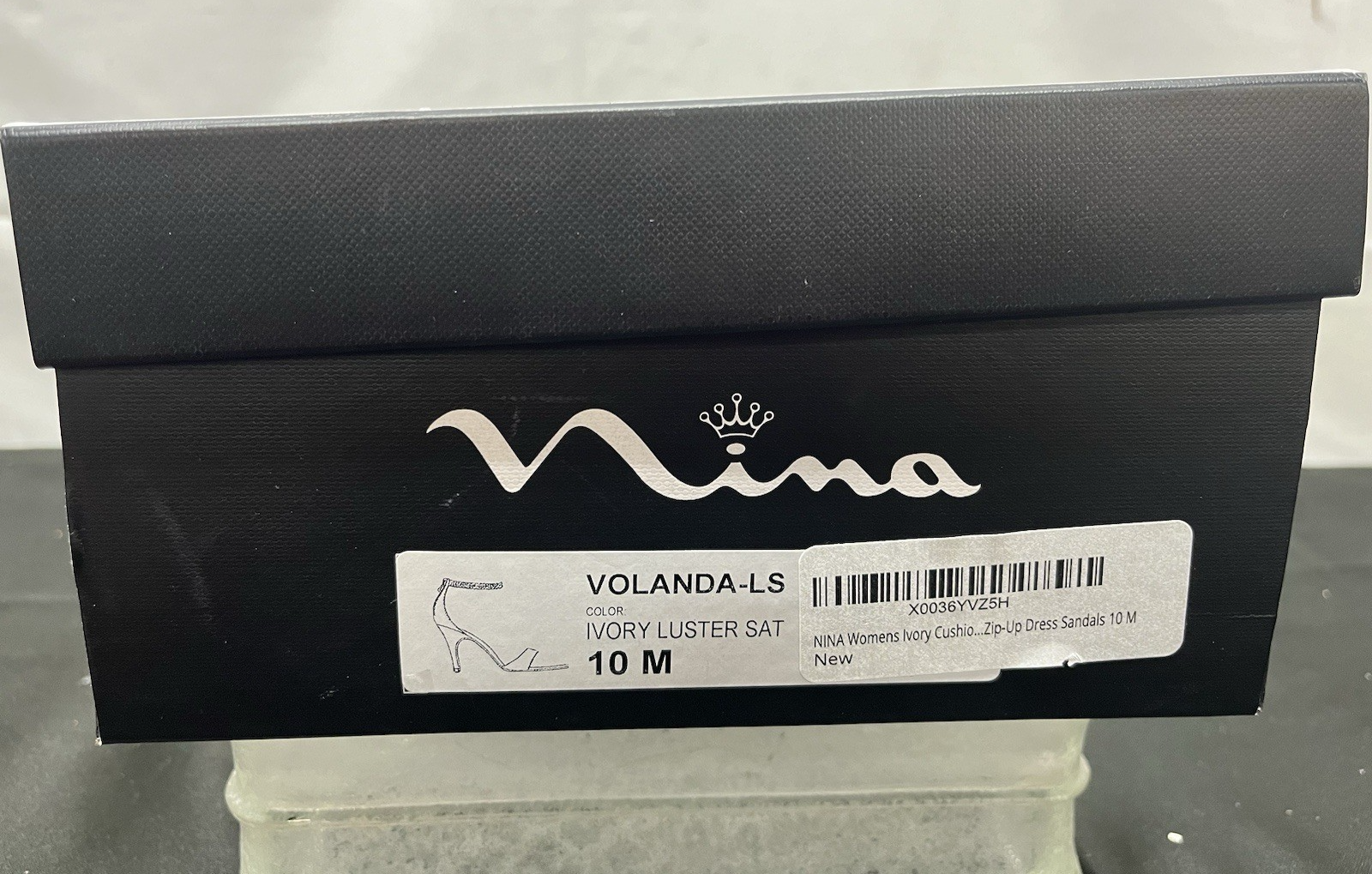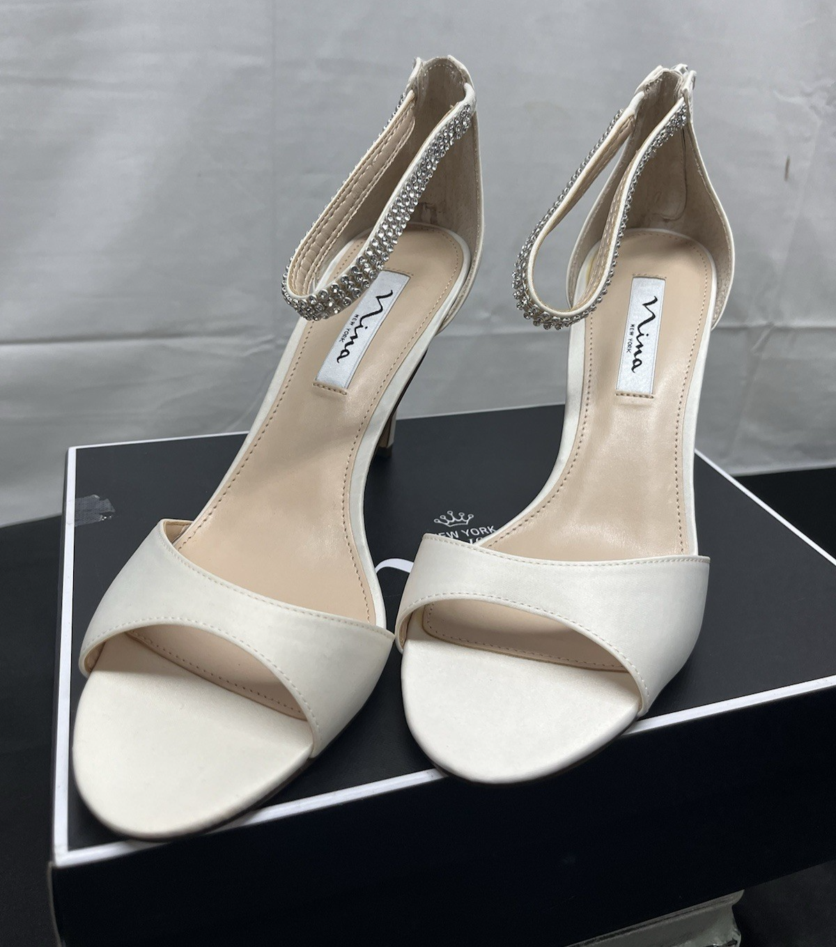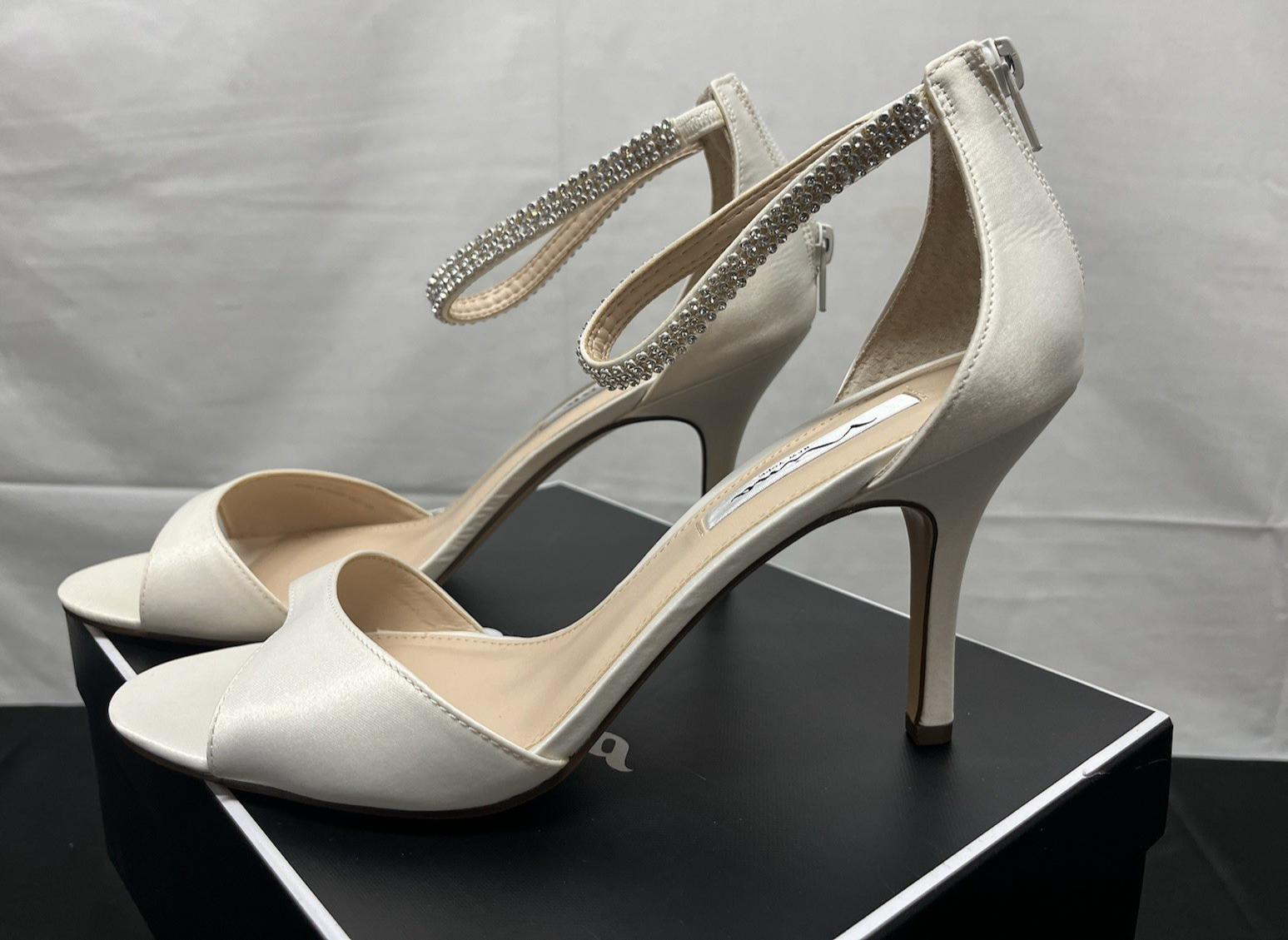 NINA Women's Volanda Satin Embellished Dress Sandals Ivory 10 Medium