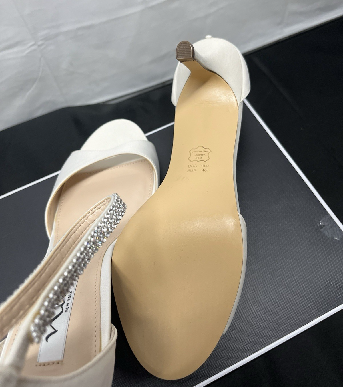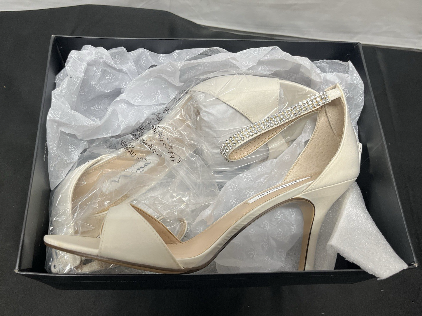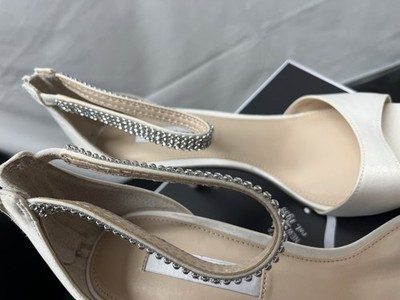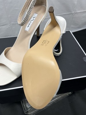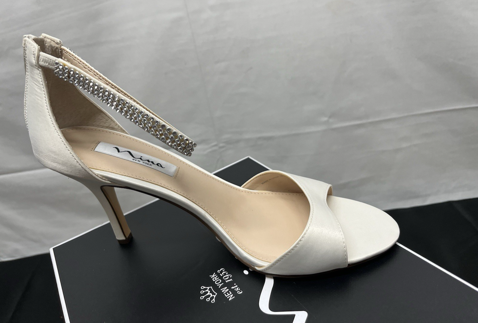 NINA Women's Volanda Satin Embellished Dress Sandals Ivory 10 Medium