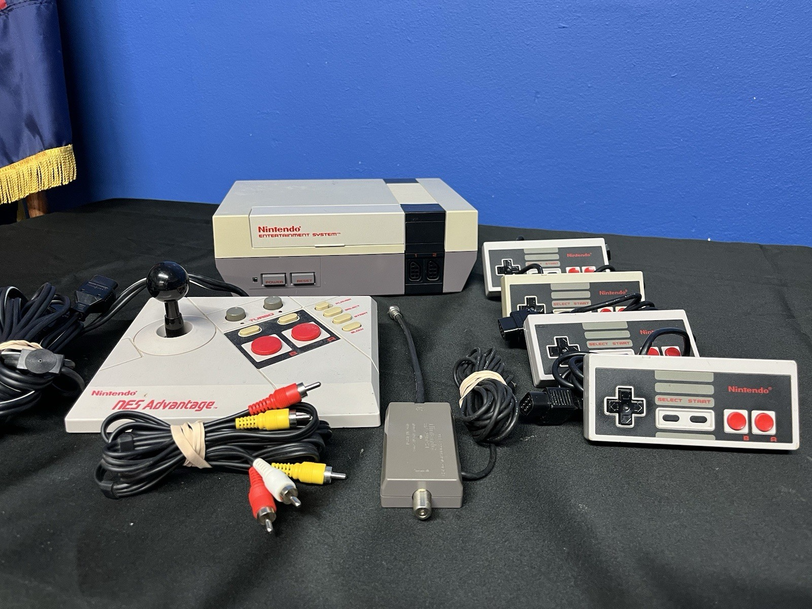 Nintendo NES Console w/5 Controllers & Cord Tested & Working - Missing AC adap.