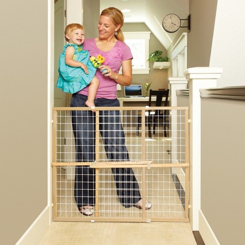 North States 4618A Natural Wood Pressure Mount Extra-Wide Wire Mesh Gate 32H in.