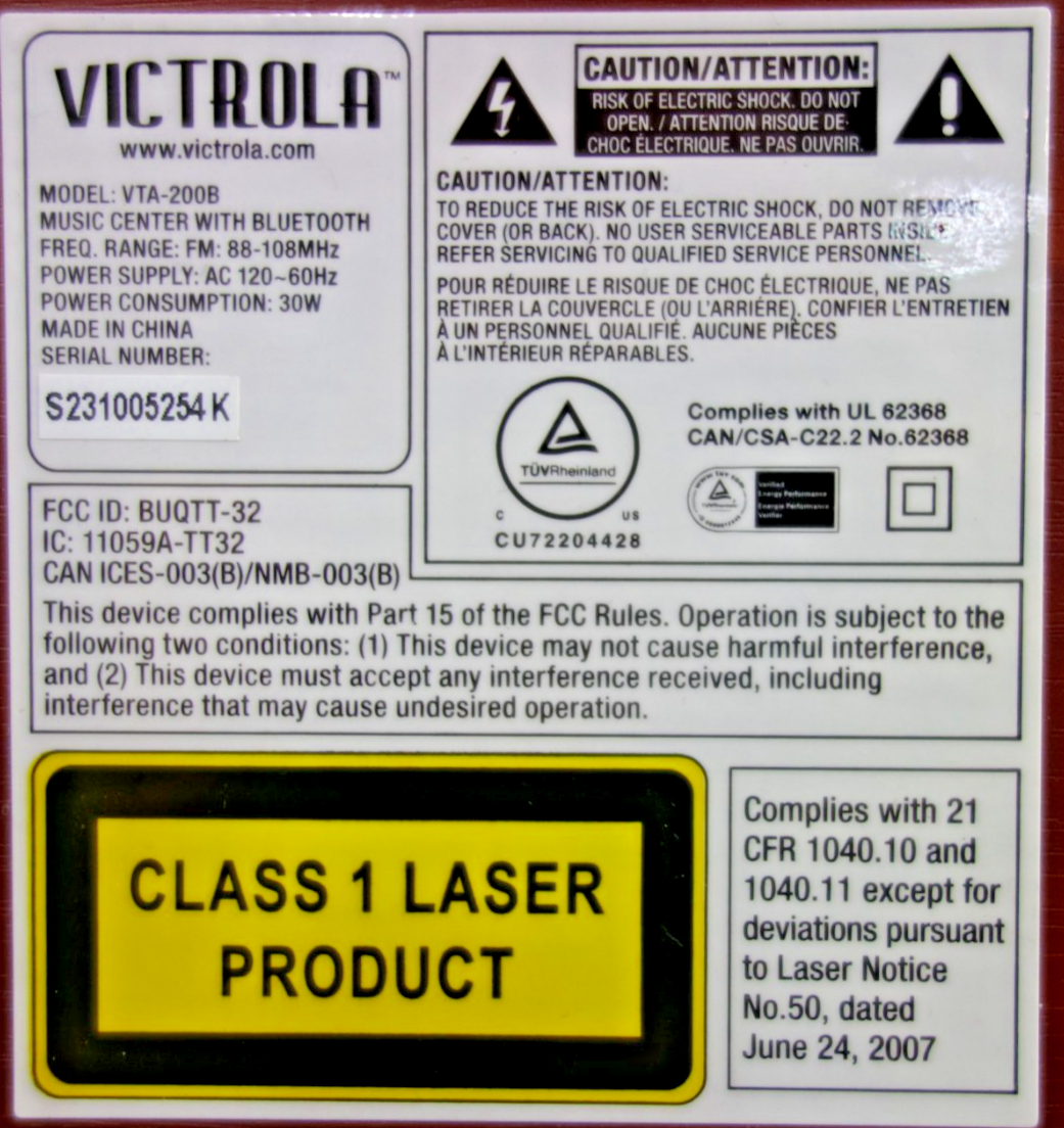 Nostalgic Tested Victrola 6 - in -1 Blue Tooth Turn-Table VTA - 200B