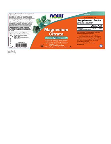 NOW Magnesium Citrate, 400 Milligram (120 Veg Capsules)