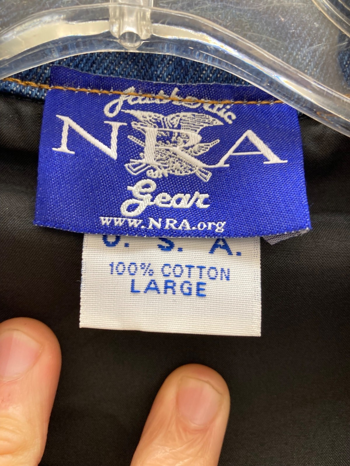 NRA Gear Mens Large Concealed Carry Denim Jacket Classic Blue Jean Style