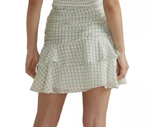 NWT MINKPINK Oxley Mini Skirt Sage Green Whiter Size Large