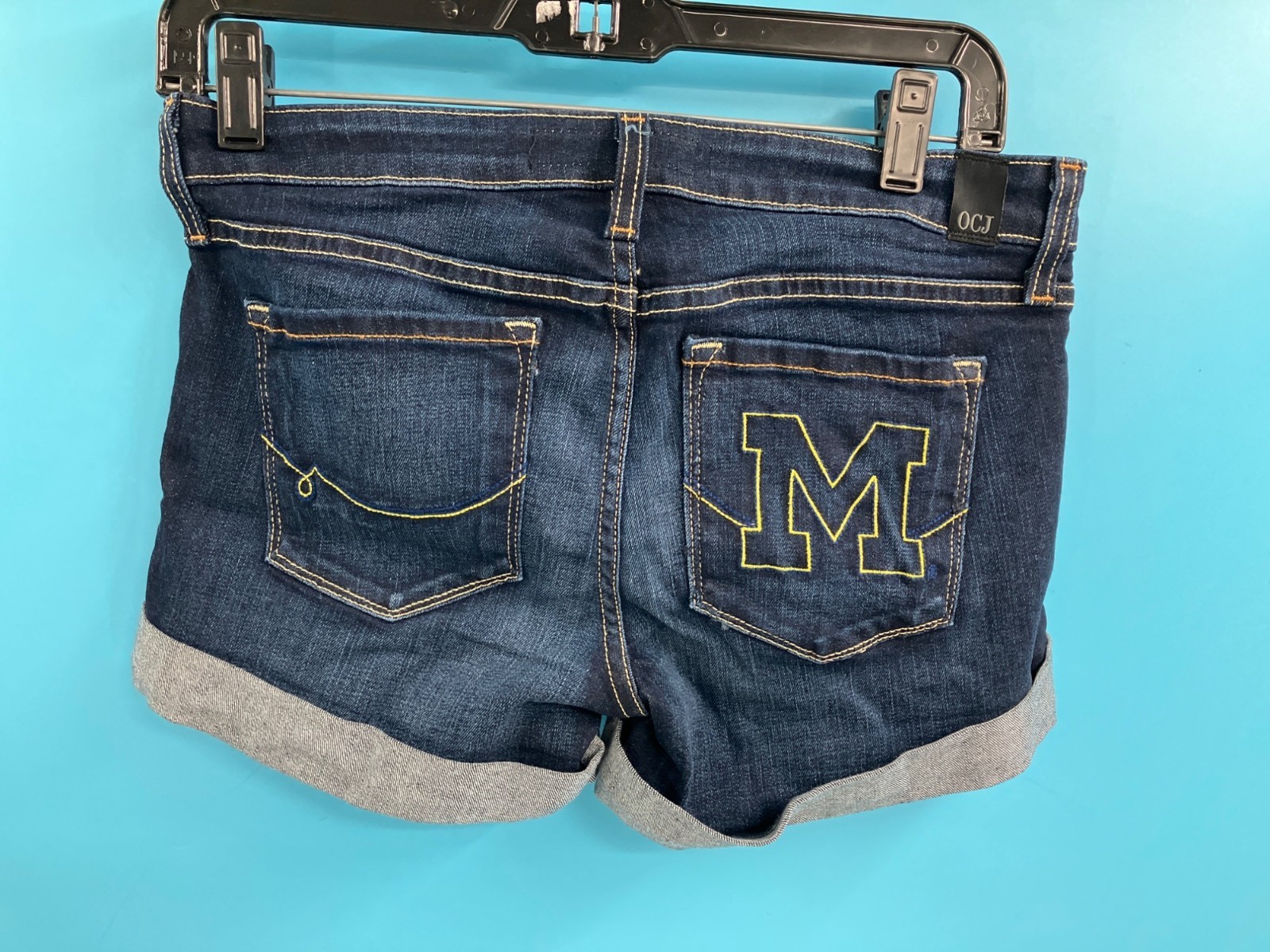 OCJ Collegiate Womens Michigan Wolverines Denim Shorts - Size-28 NWT