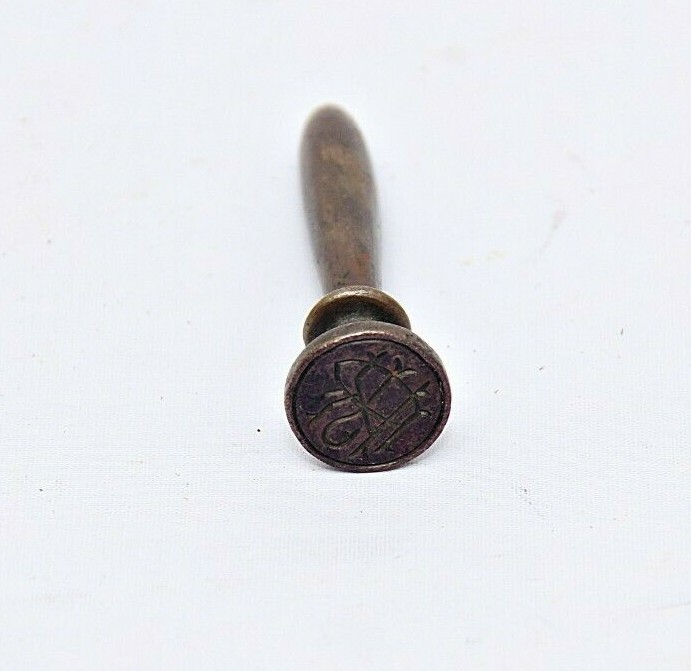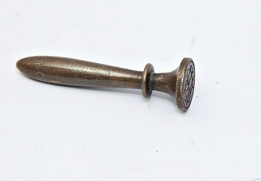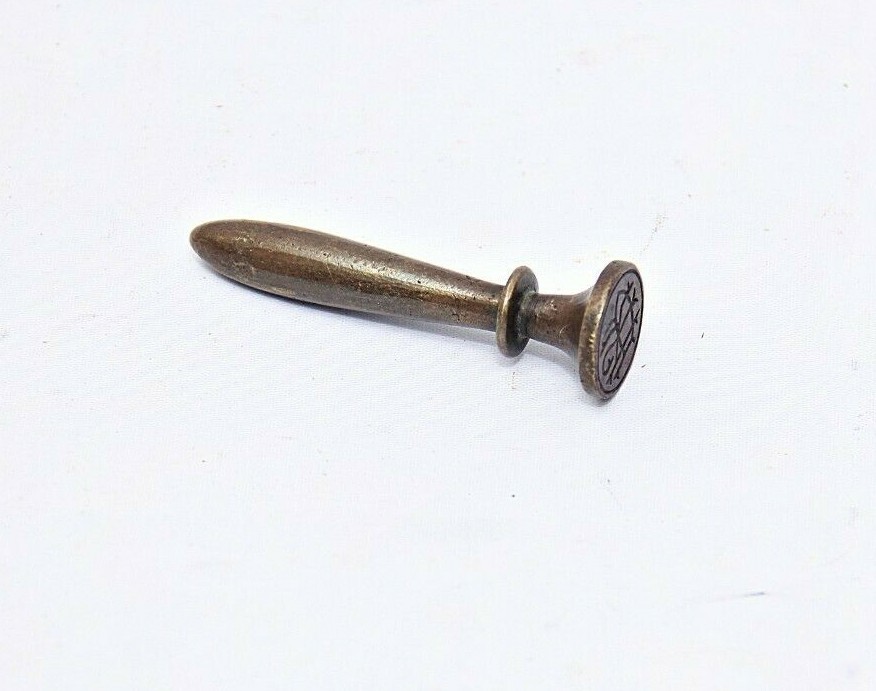 OLD VINTAGE UNIQUE LOGO / PATTERN EMBOSSING BRASS STAMP WAX SEAL COLLECTIBLE