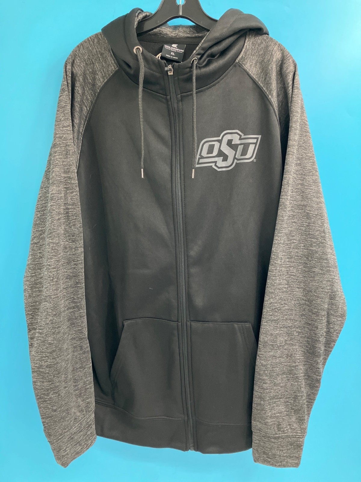 OSU Oklahoma State University Full Zip Hoodie Black/Grey Men's Size XL