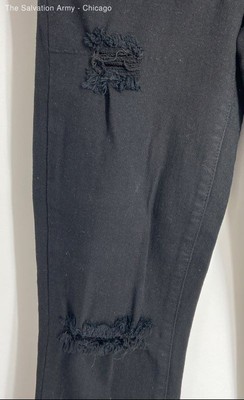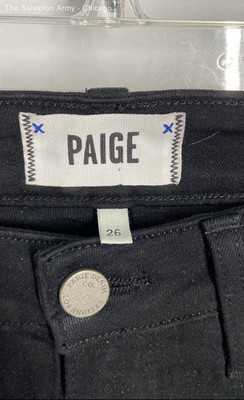 Paige Womens Black Medium Wash Distressed Denim Skinny Jeans Size 26