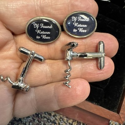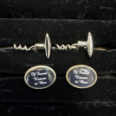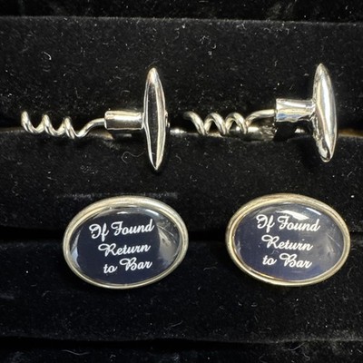 Pair Cork Screw Wine Bottle Opener/if Found Return To Bar MODERN Cuff Link