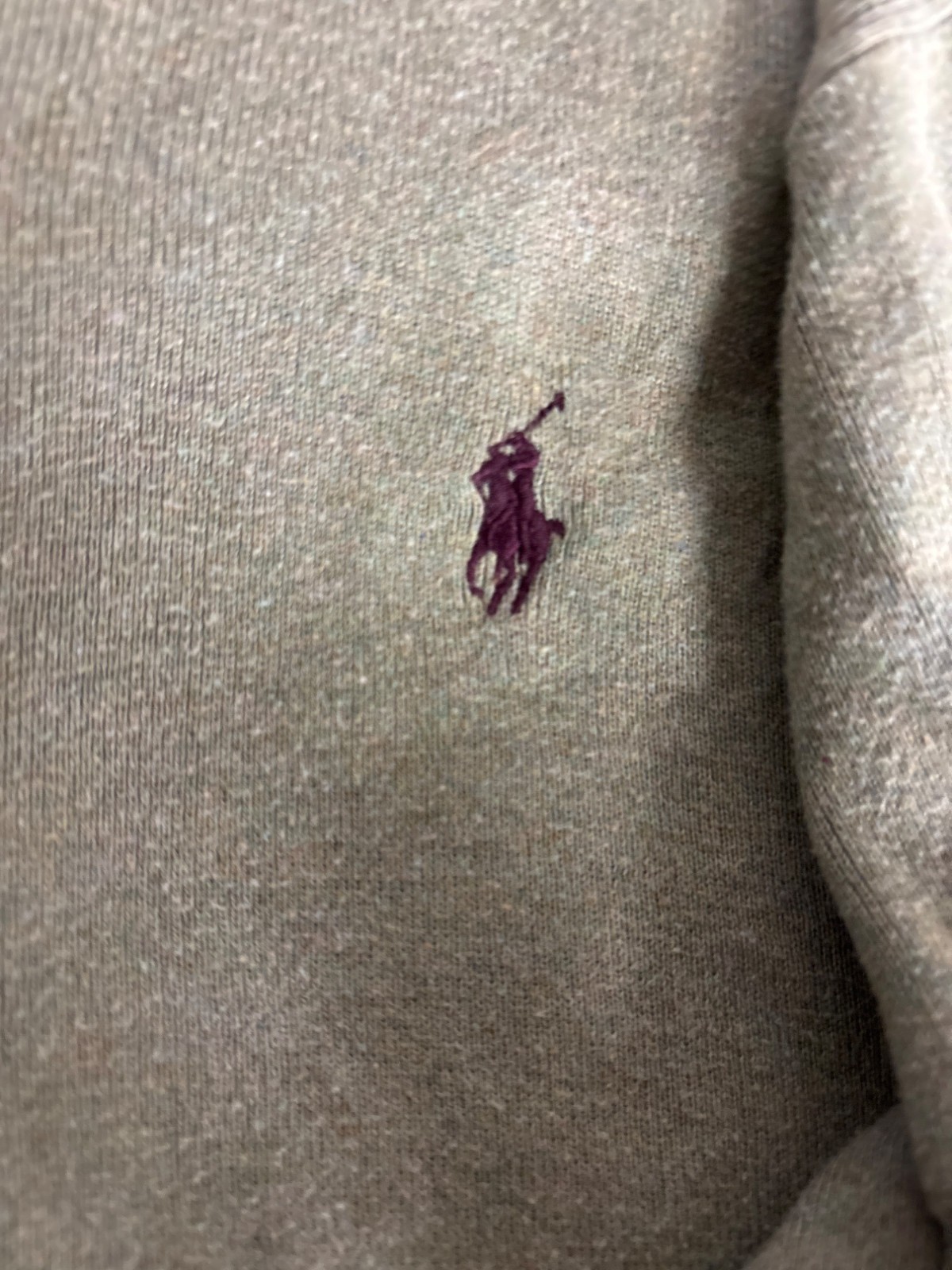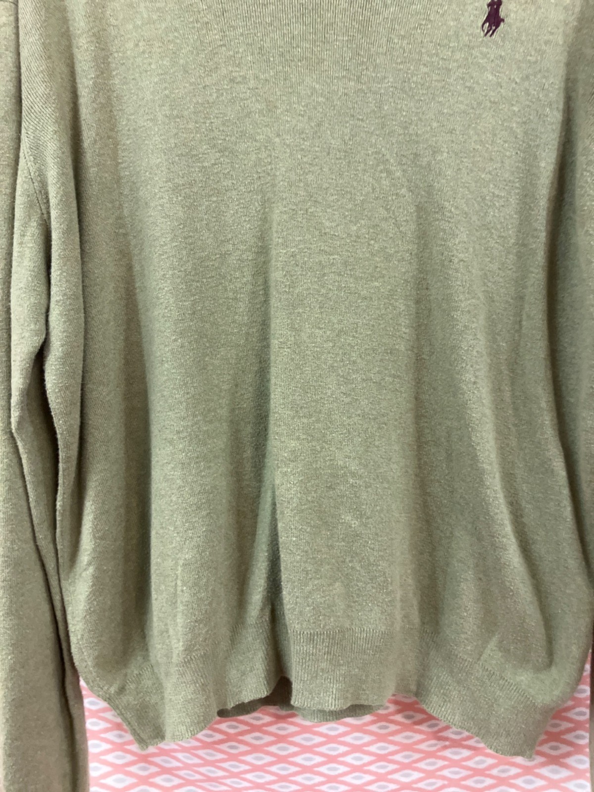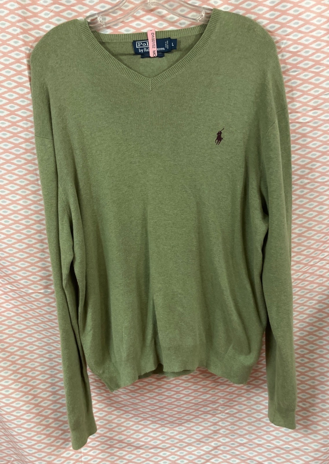 Polo By Ralph Lauren Mens Green Pima Cotton V-Neck Sweater Purple Logo Size L