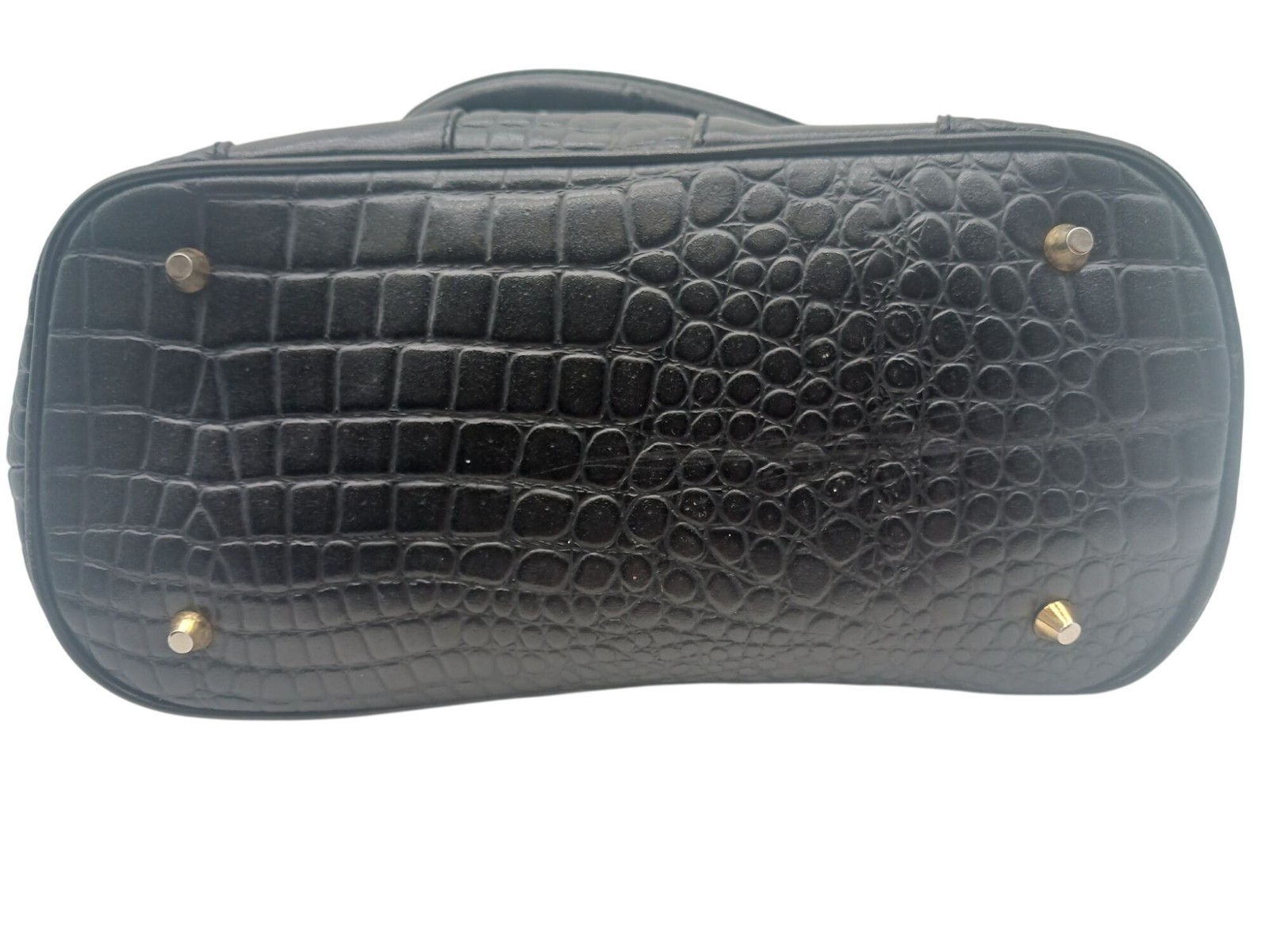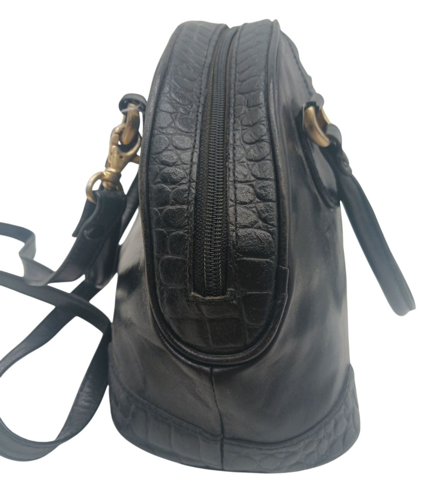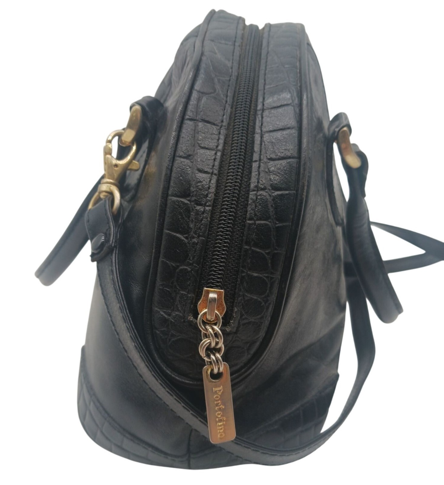 Portofino Collection Black Leather Handbag With Adjustable Strap