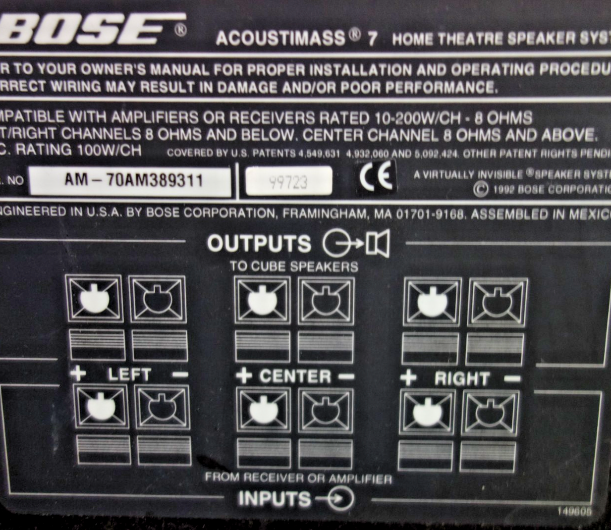 Pre-Owned Untested /Parts Only / Lot Of 5 Bose Speakers / Sub-Woofer