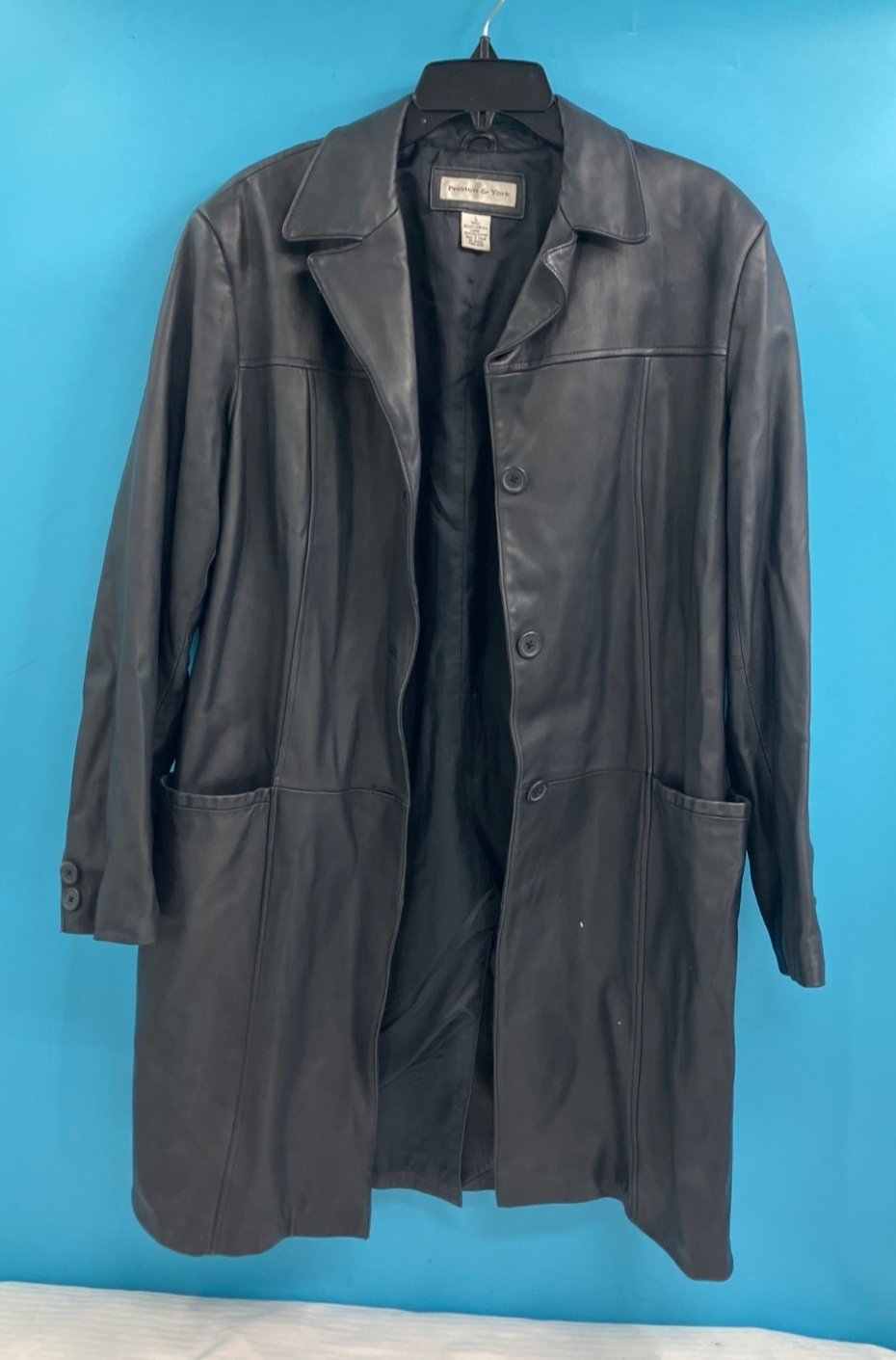 Preston & York Womens Long Black Lamb skin Button Jacket (size L)
