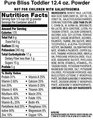 - Pure Bliss Toddler Drink with Probiotics provides a complement to your toddler's food for ages 12-36 months