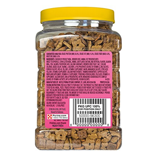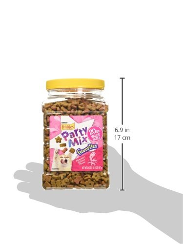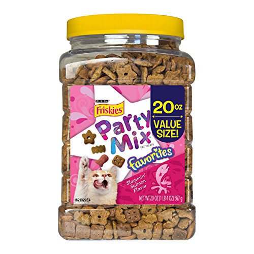 - One (1) 20-Ounce Canister of Purina Friskies Party Mix Favorites Slammin' Salmon Flavor Cat Treats