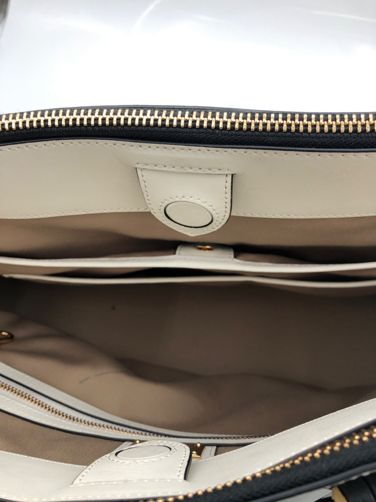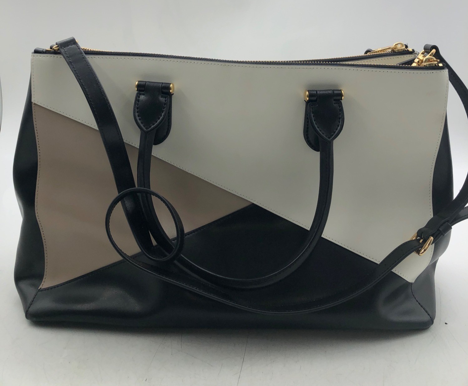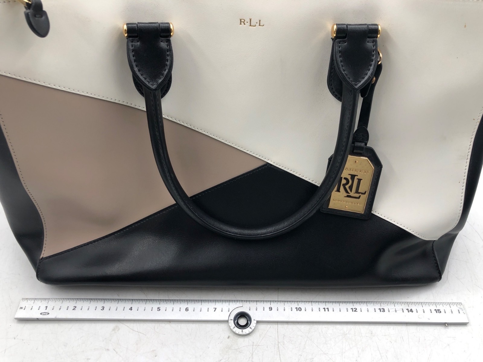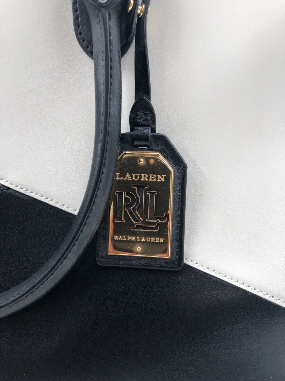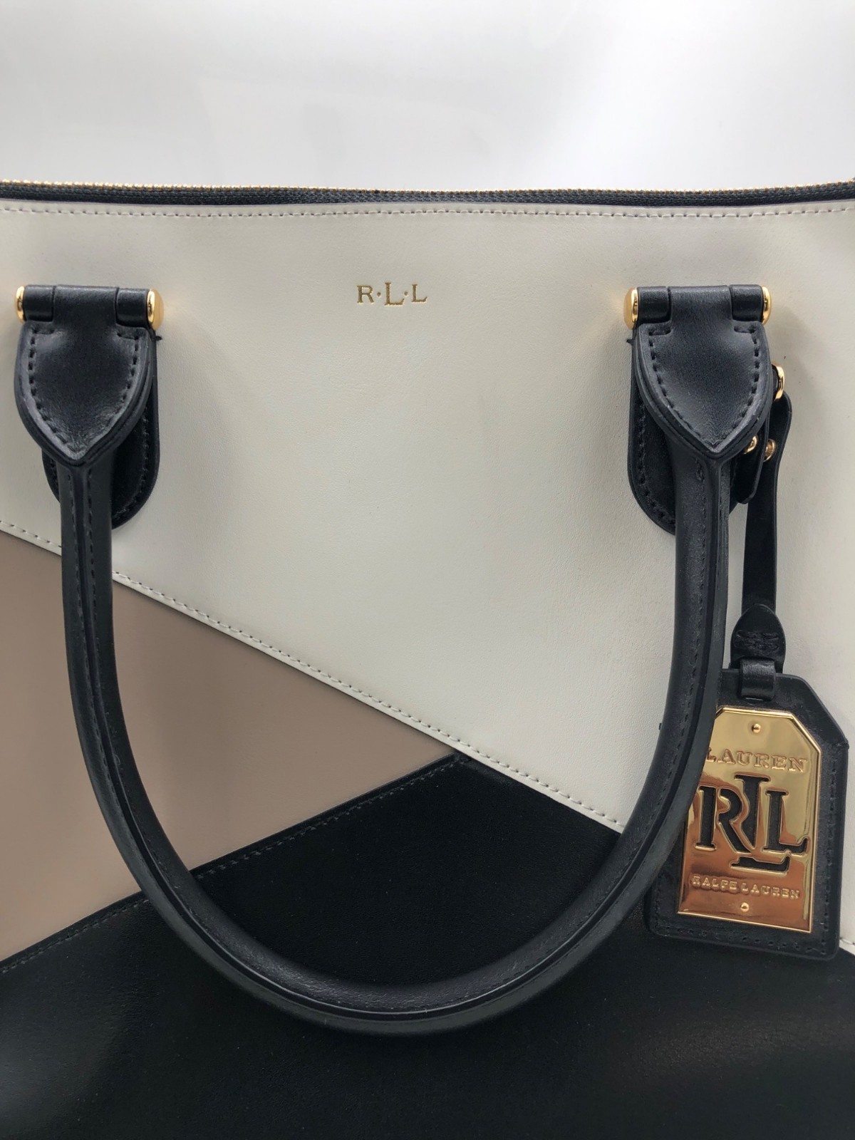 RALPH LAUREN NEWBURY COLOR BLOCK Geometric Black/Vanilla/Porcini SATCHEL VGC