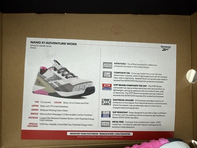 Reebok Work Nano X1 Adventure Work EH Composite Toe Womens 11 MedGrey Green Pink