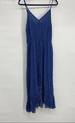 Rewind Womens Blue Diamond V-Neck Sleeveless Button-Front Maxi Dress Size XL