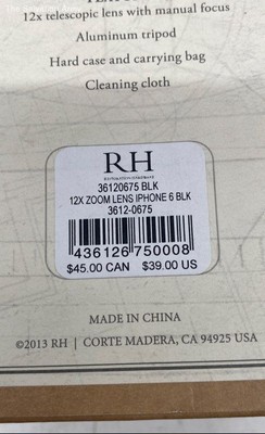 RH Manual Focus iPhone Zoom Lens & Tripod 5/5S/6 12X With Hard Case Bag