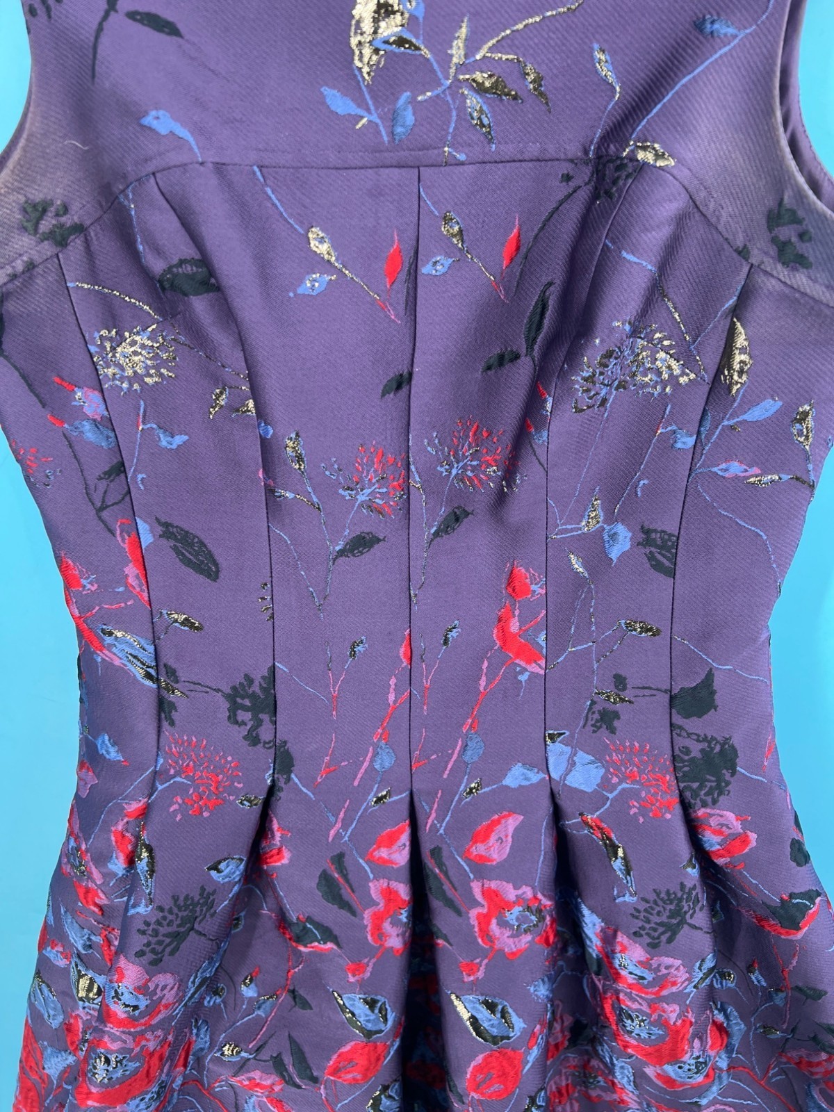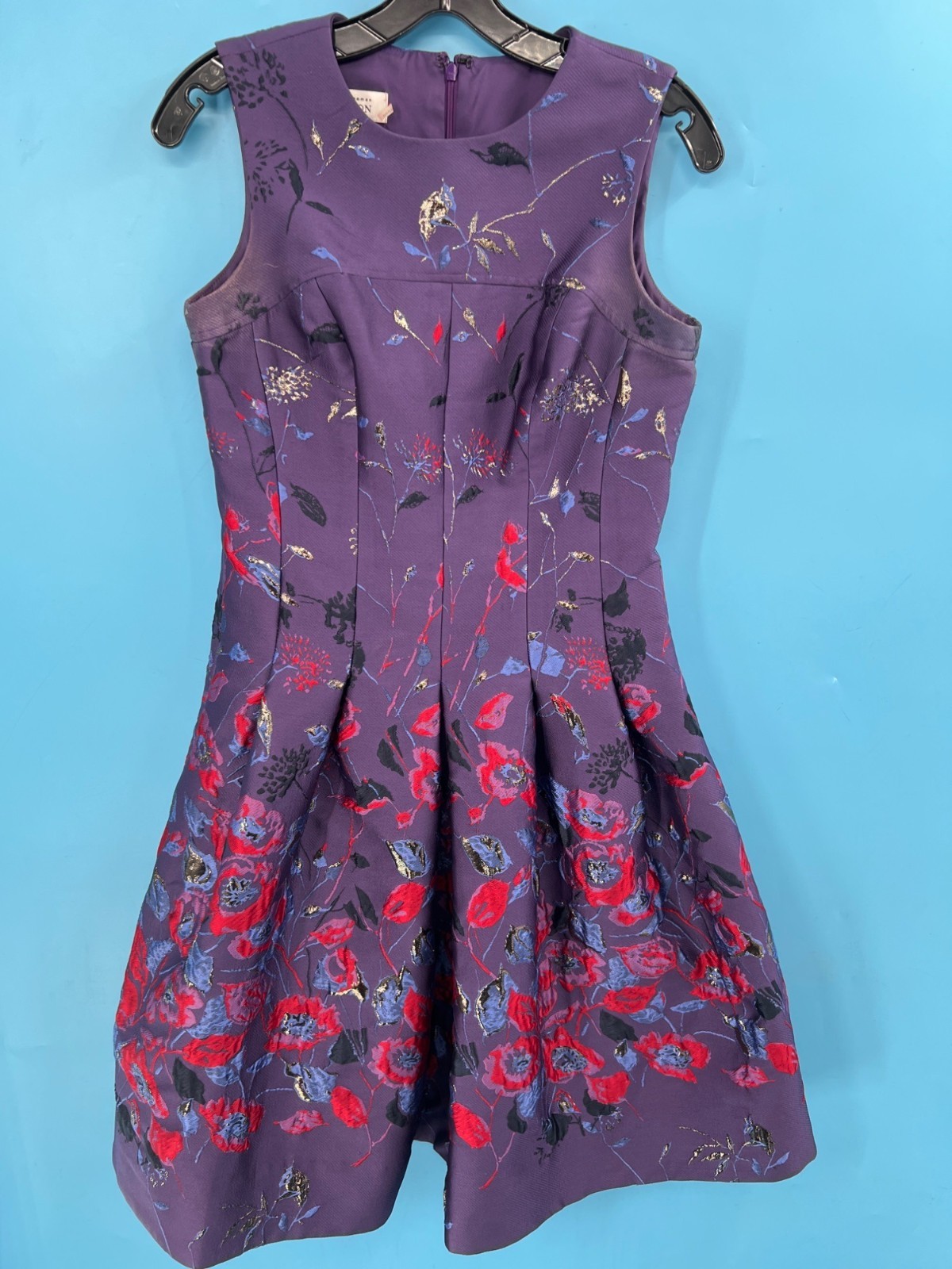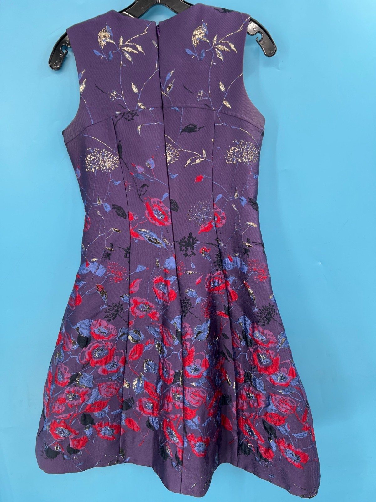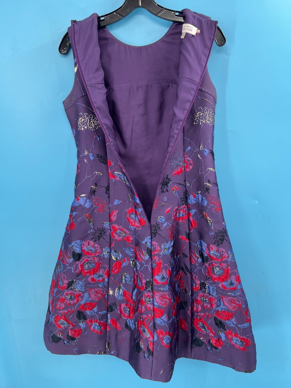 Rickie Freeman Teri Jon Purple Floral Sleeveless Mid Dress (size 4)
