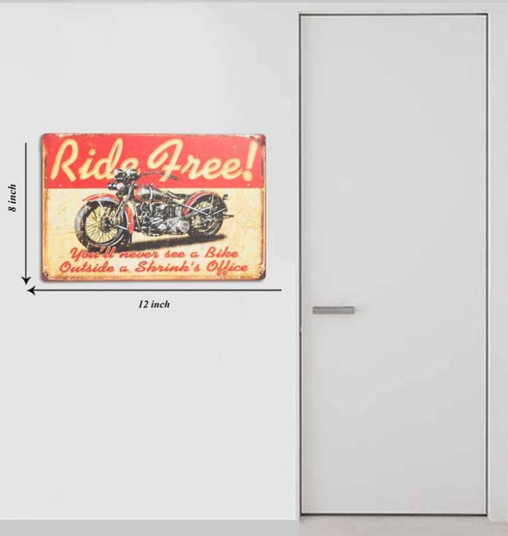RIDE FREE TIN PLATE WITH PRINTED TOP POSTER - 12 X 8 INCHES TIN SIGN