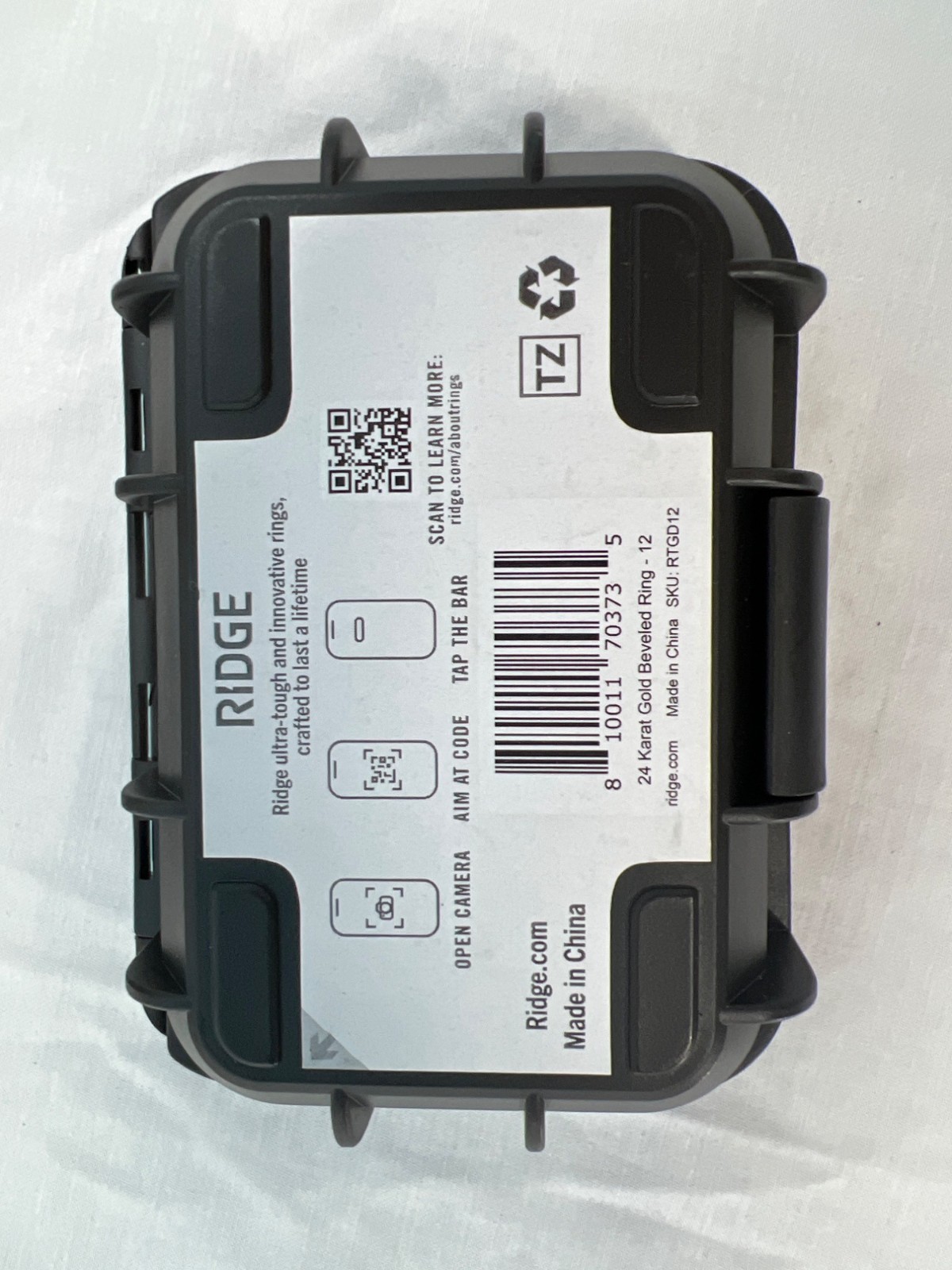 Ridge Beveled 24K Gold Plated Tungsten & Black Silicone Wedding Bands Size 12