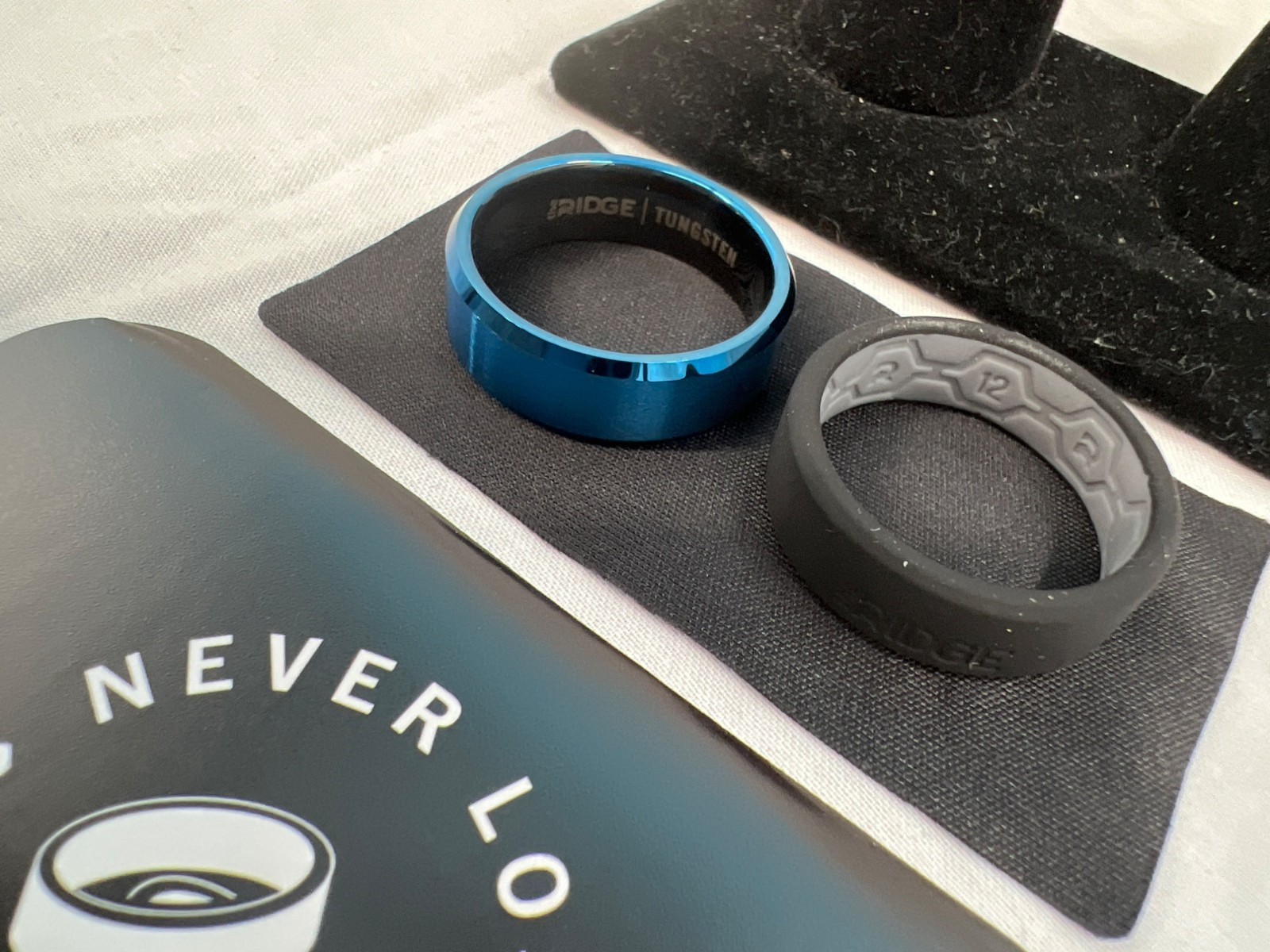 Ridge Rings Pair Beveled Alpine Navy Blue & Black Silicone Wedding Bands Size 12