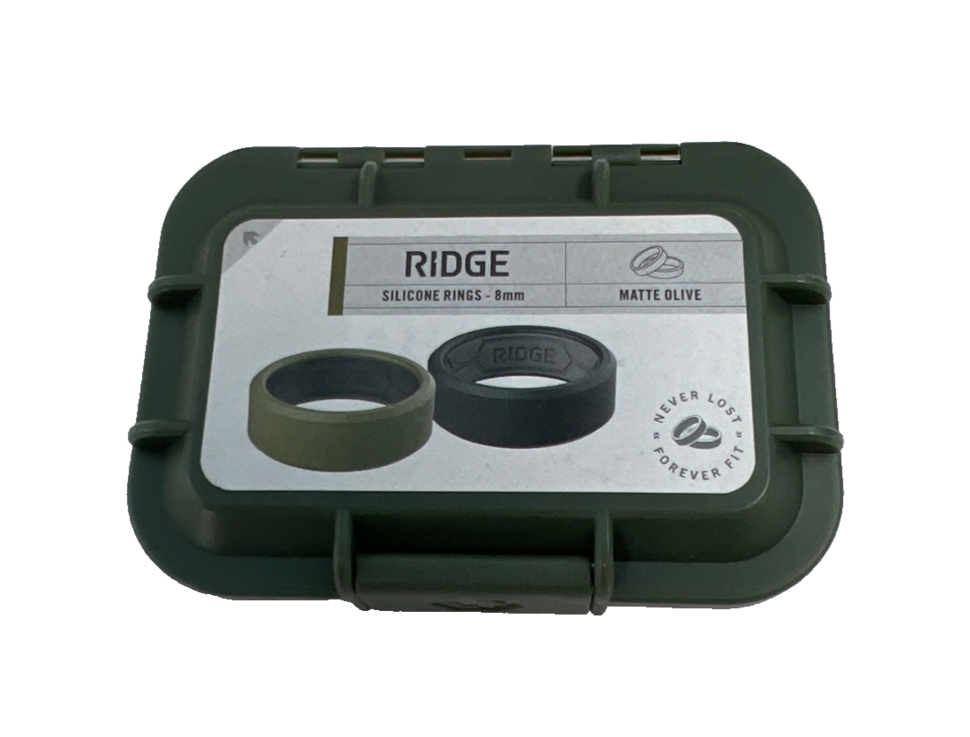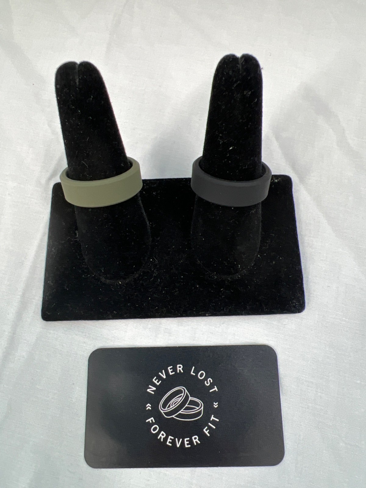 Ridge Silicone Rings Size 10 Matte Olive Green & Black Wedding Bands With Case
