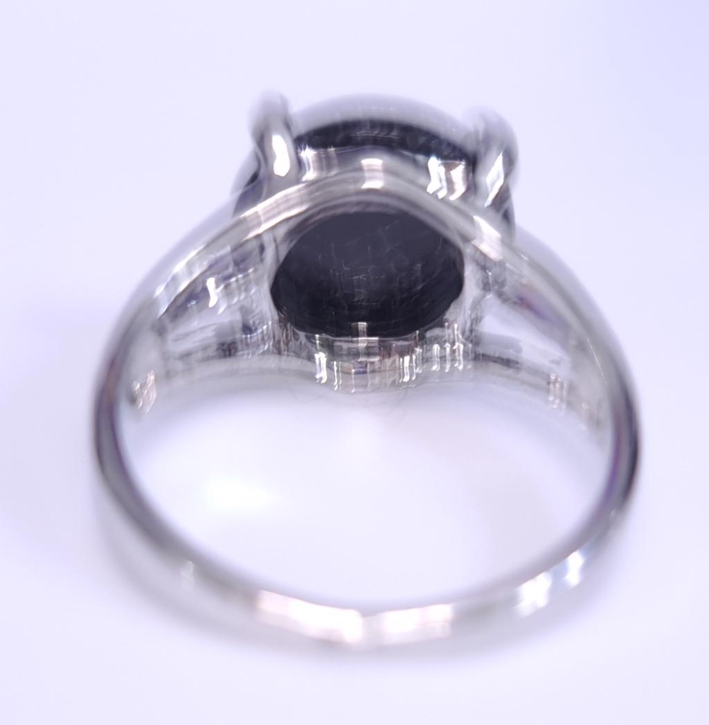 Ring 8.5 Silvertone Black Round Stone White Veins Faux Quartz Marbled Cabachon
