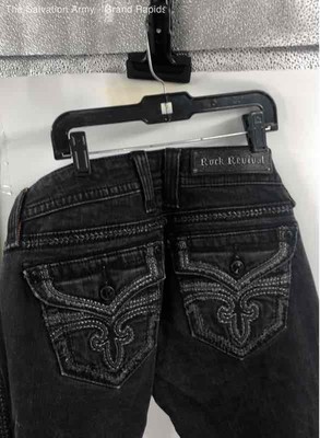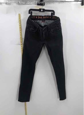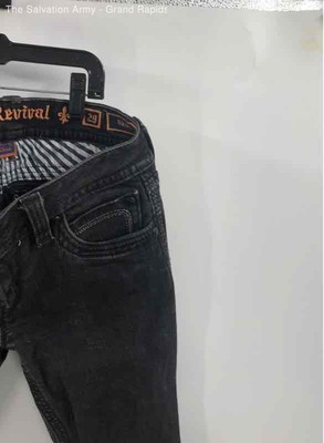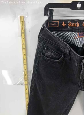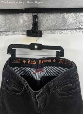 Rock Revival Mens Black Dark Wash 5-Pocket Design Denim Skinny Leg Jeans Size 29
