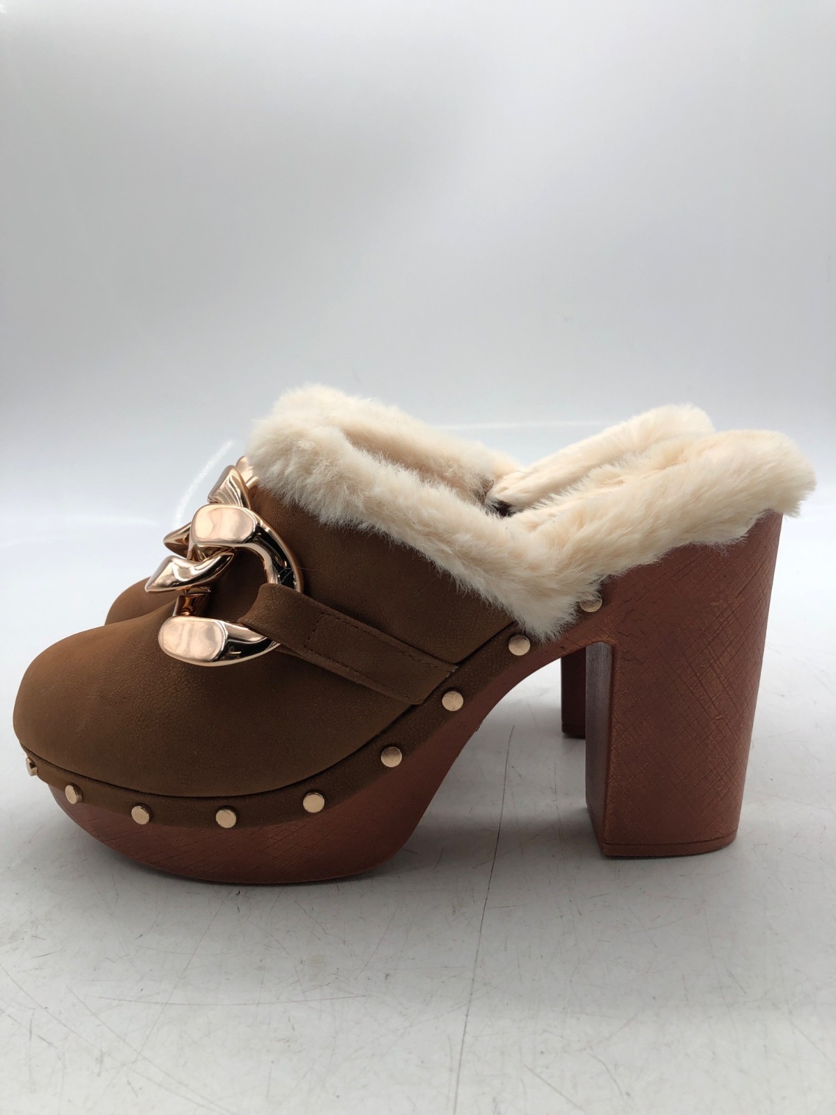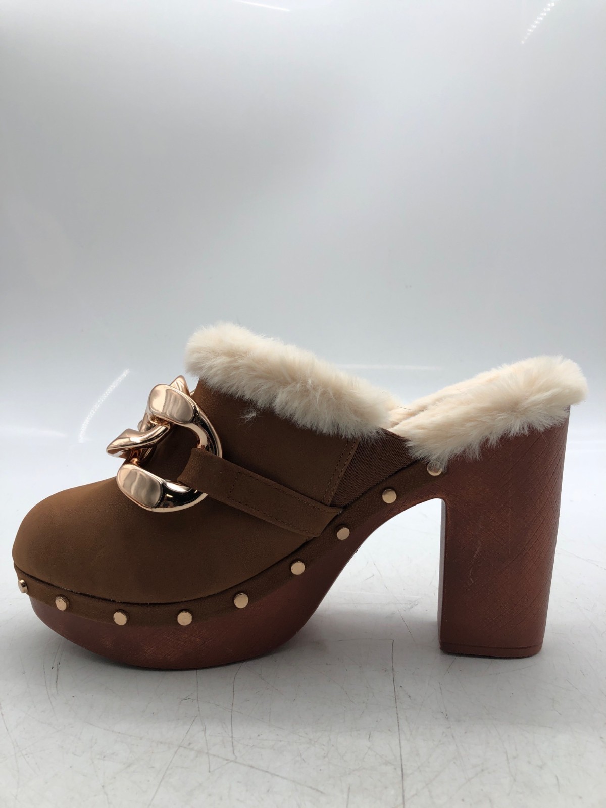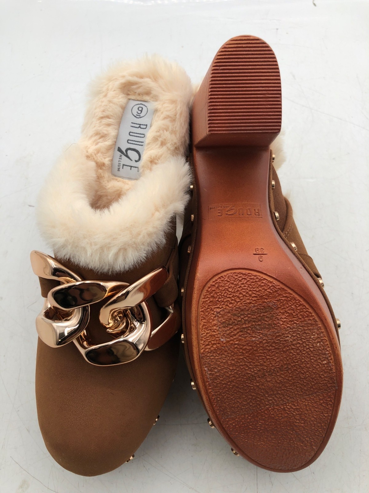 Rogue Womens Faux Fur Chained Mule Clogs Chestnut- Size 39/9 VGC