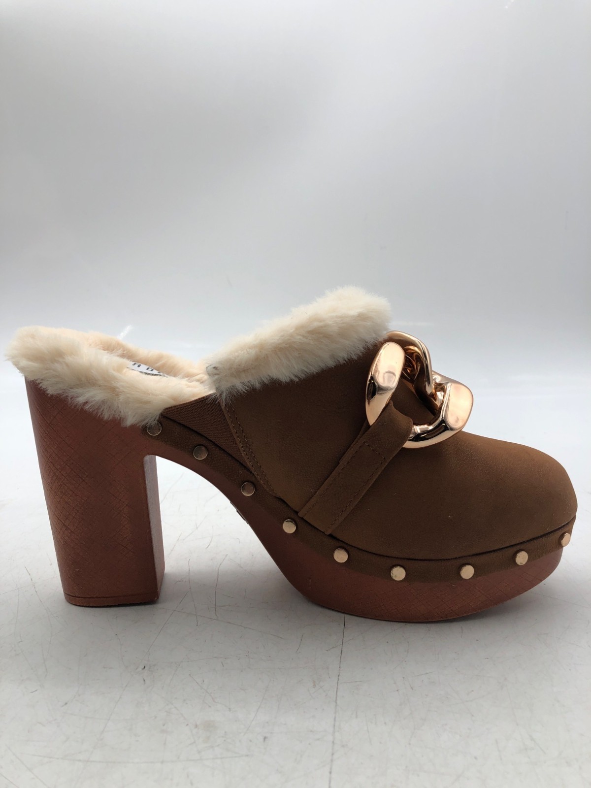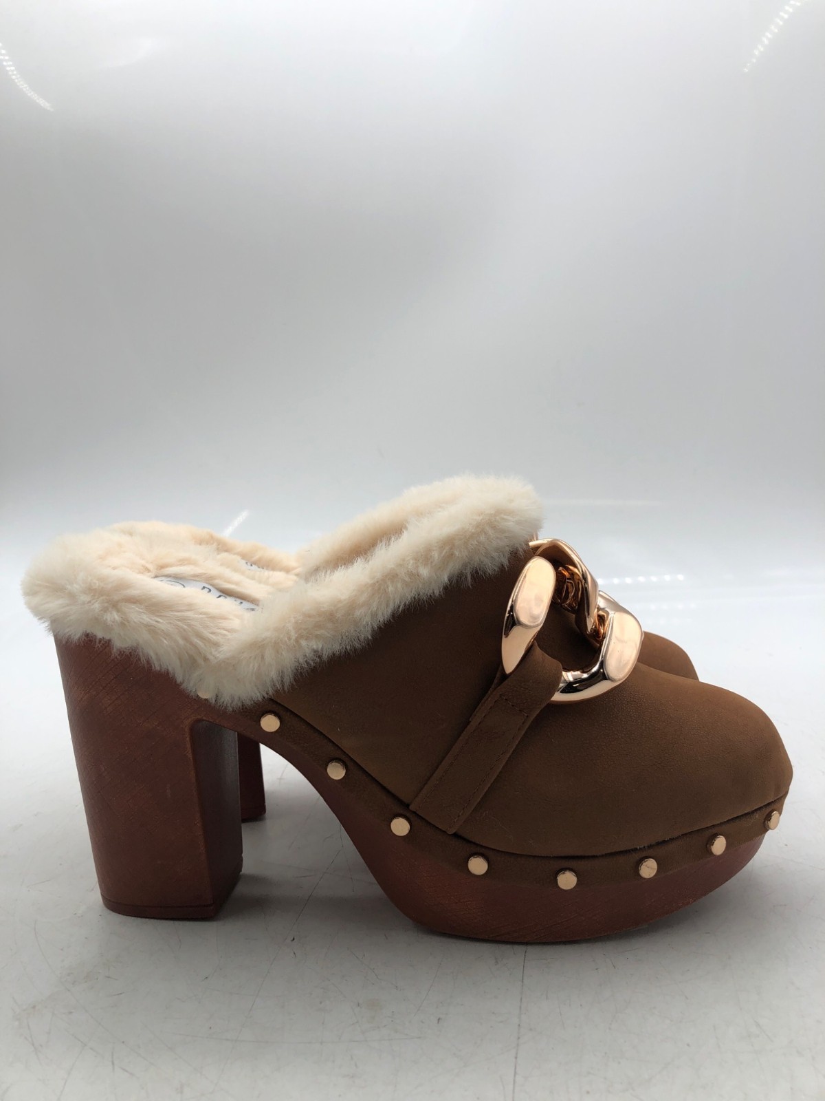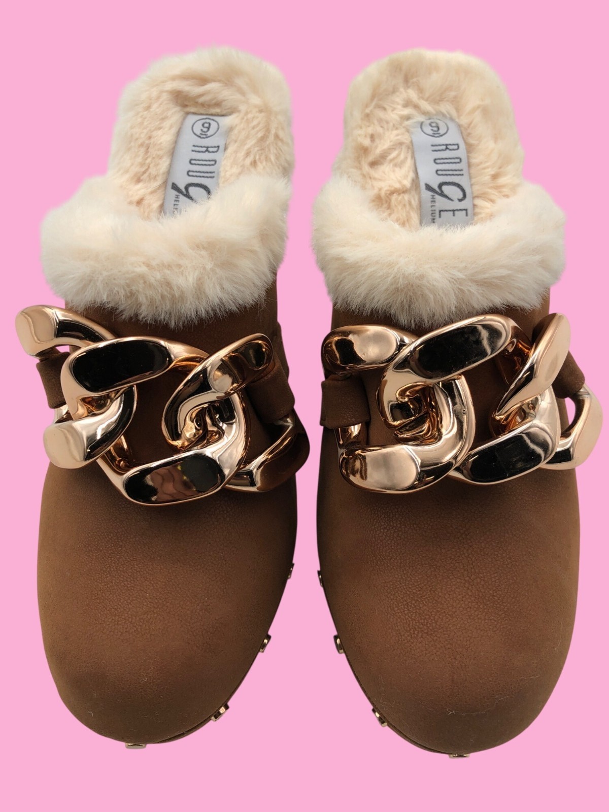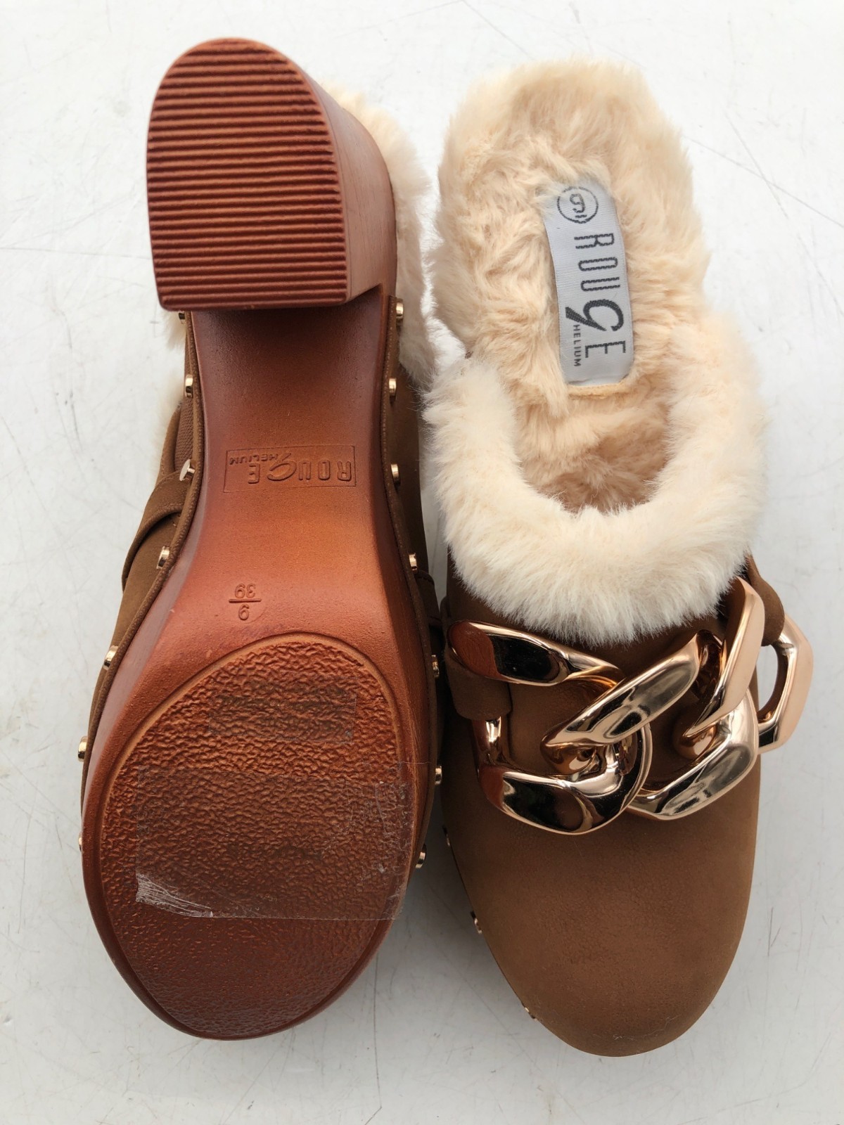 Rogue Womens Faux Fur Chained Mule Clogs Chestnut- Size 39/9 VGC