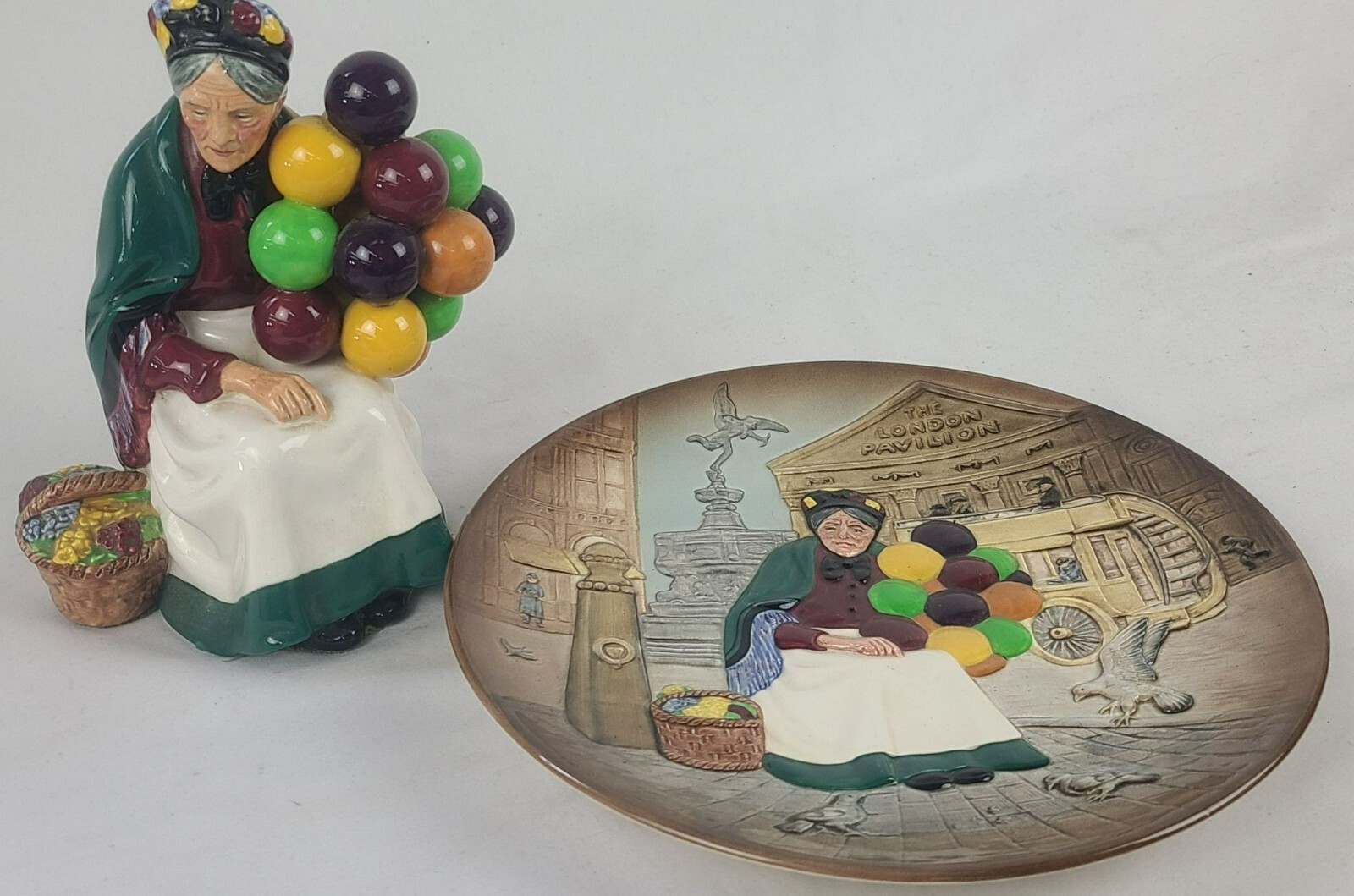 Royal Doulton "The Old Balloon Seller" Figurine & Plate Set HN1315 D6649