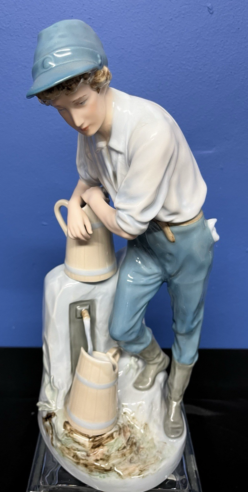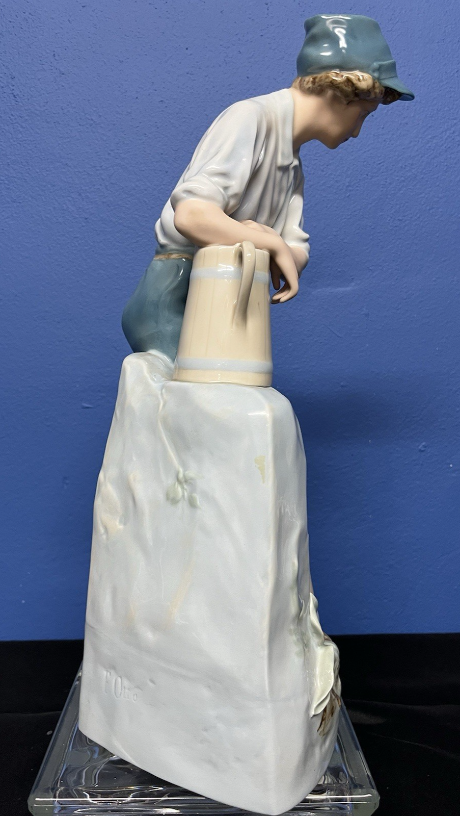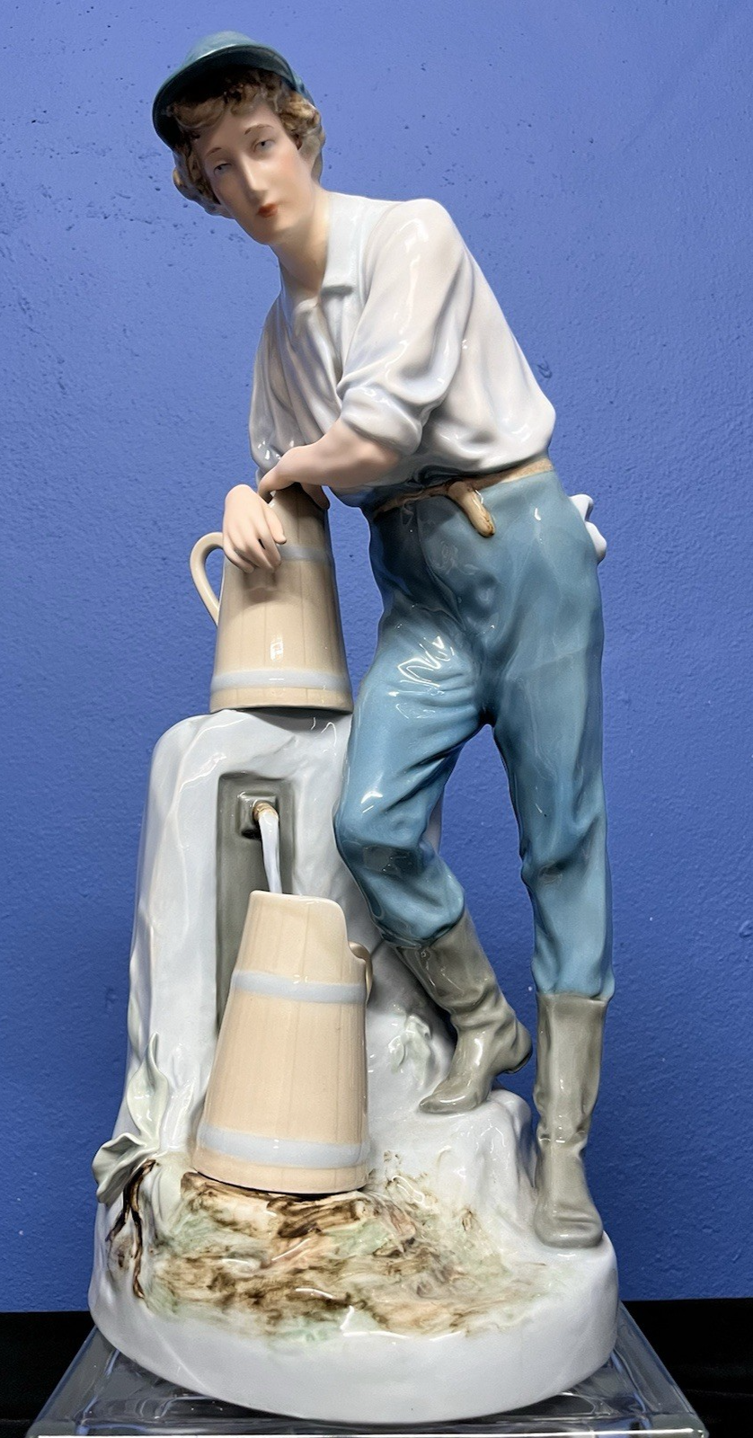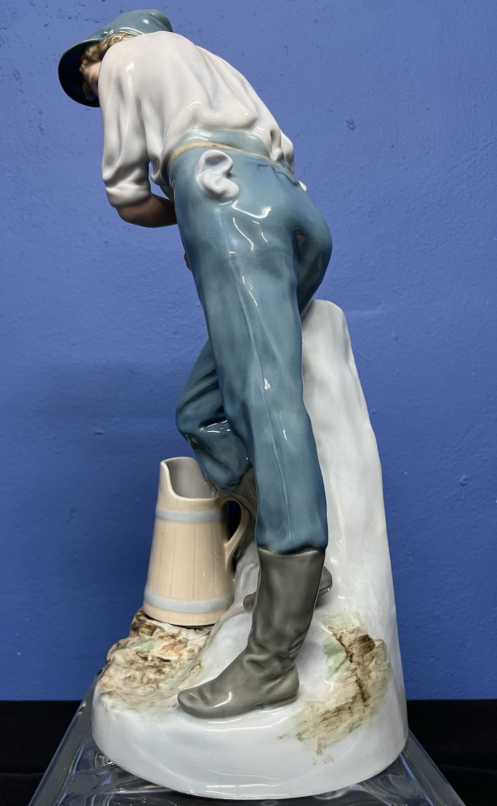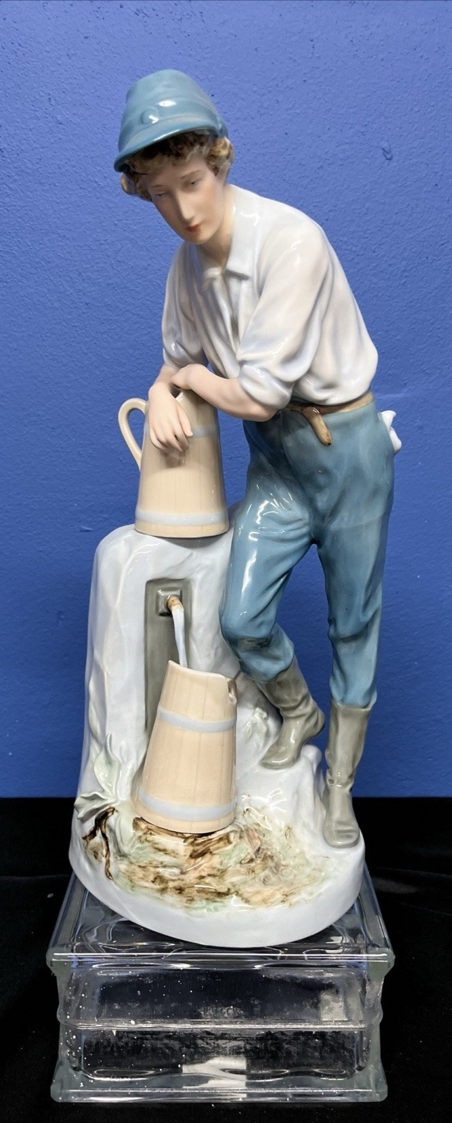 Royal Dux Porcelain 18"H Of The Boy Next To Water Well