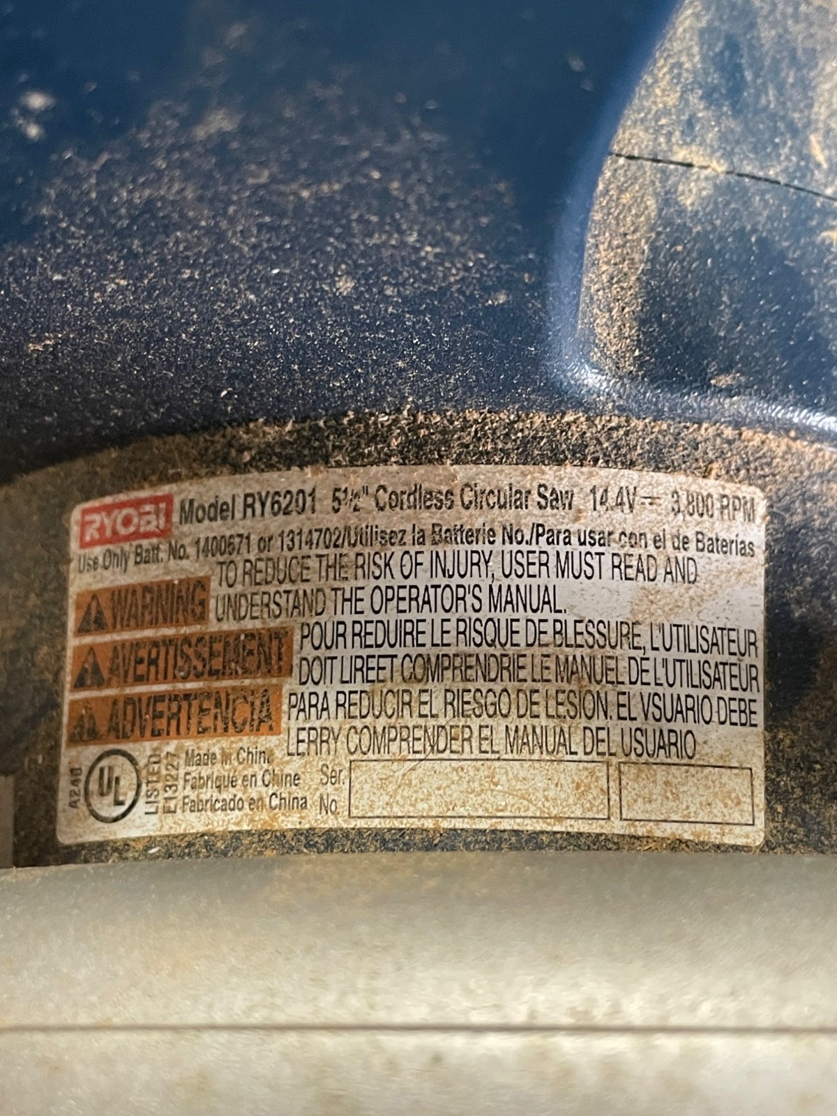 Ryobi 5 1/2 " Cordless Circular Saw 14.4v RY6201 with Blade NO BATTERY