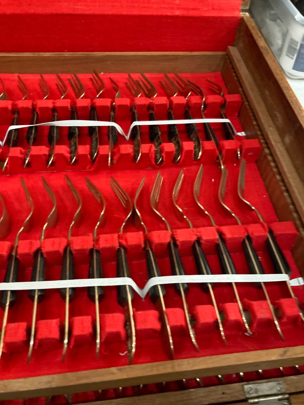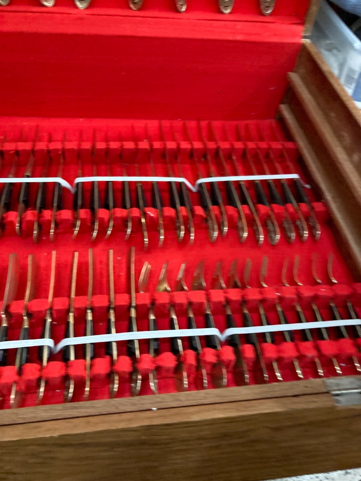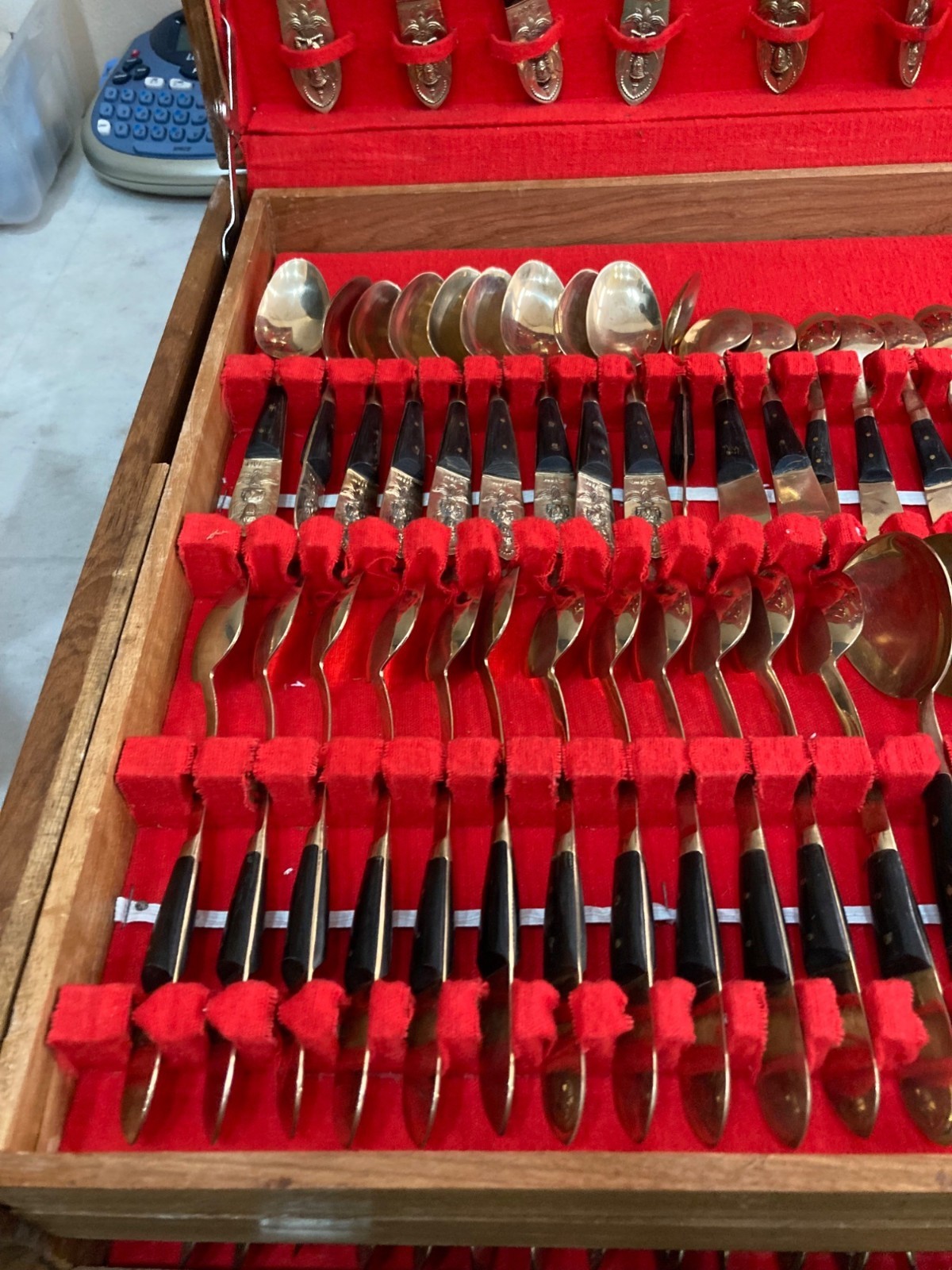 S . SAMRAN THAILAND 144-PIECE BRONZWARE FLATWARE SET WITH WOOD CASE
