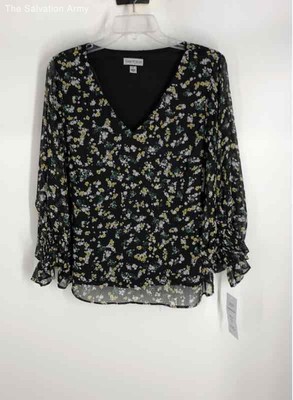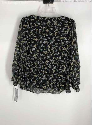 Sam And Jess Womens Multicolor Floral Long Sleeve V-Neck Blouse Top Size Small