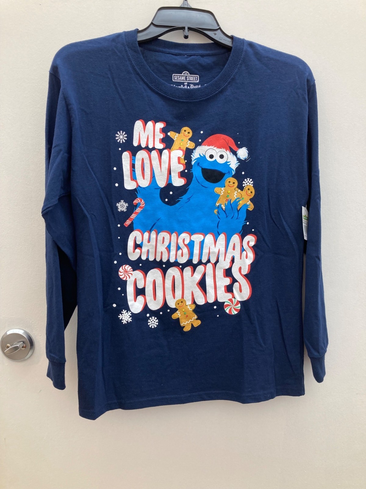 Sesame Street Cookie Monster Christmas Long Sleeve Shirt Navy Size L Youth