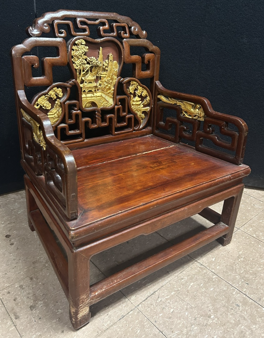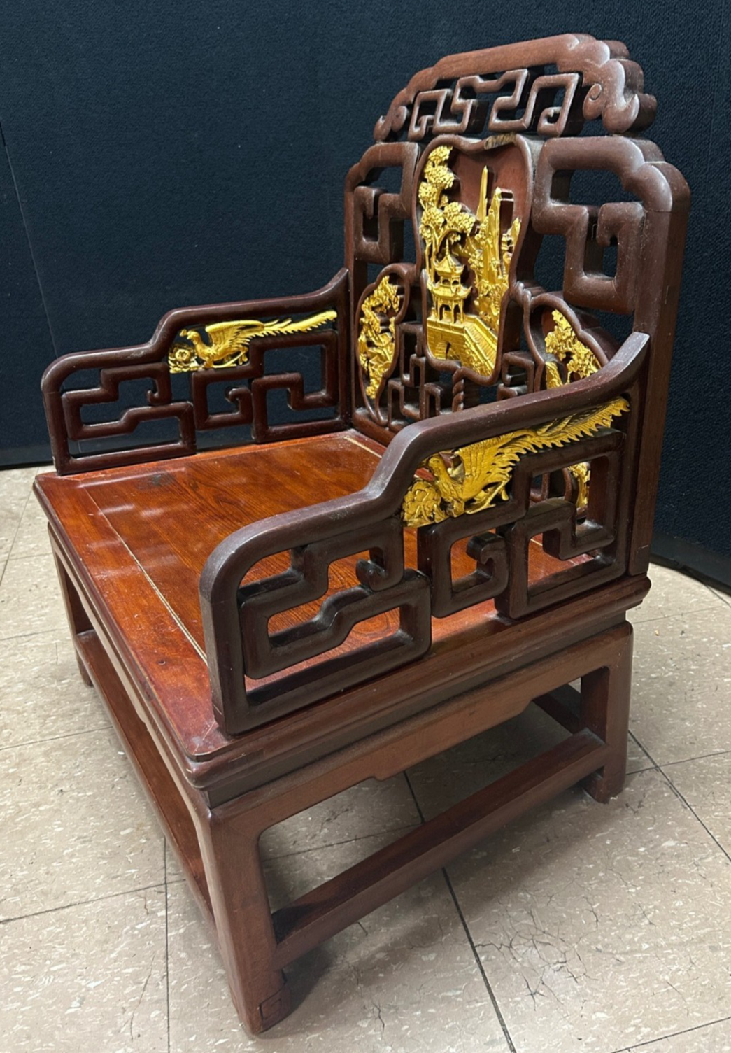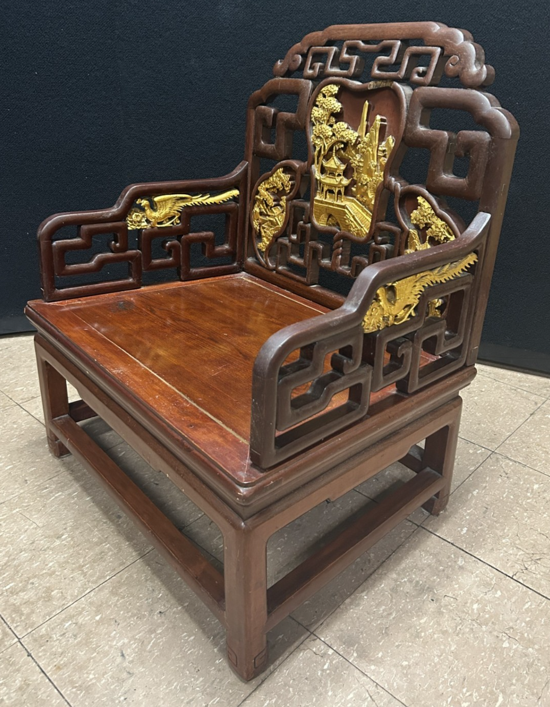 Set of 2 Chinese Taishi Armchairs w/ Gold Highlights (Local Pickup Houston Only)