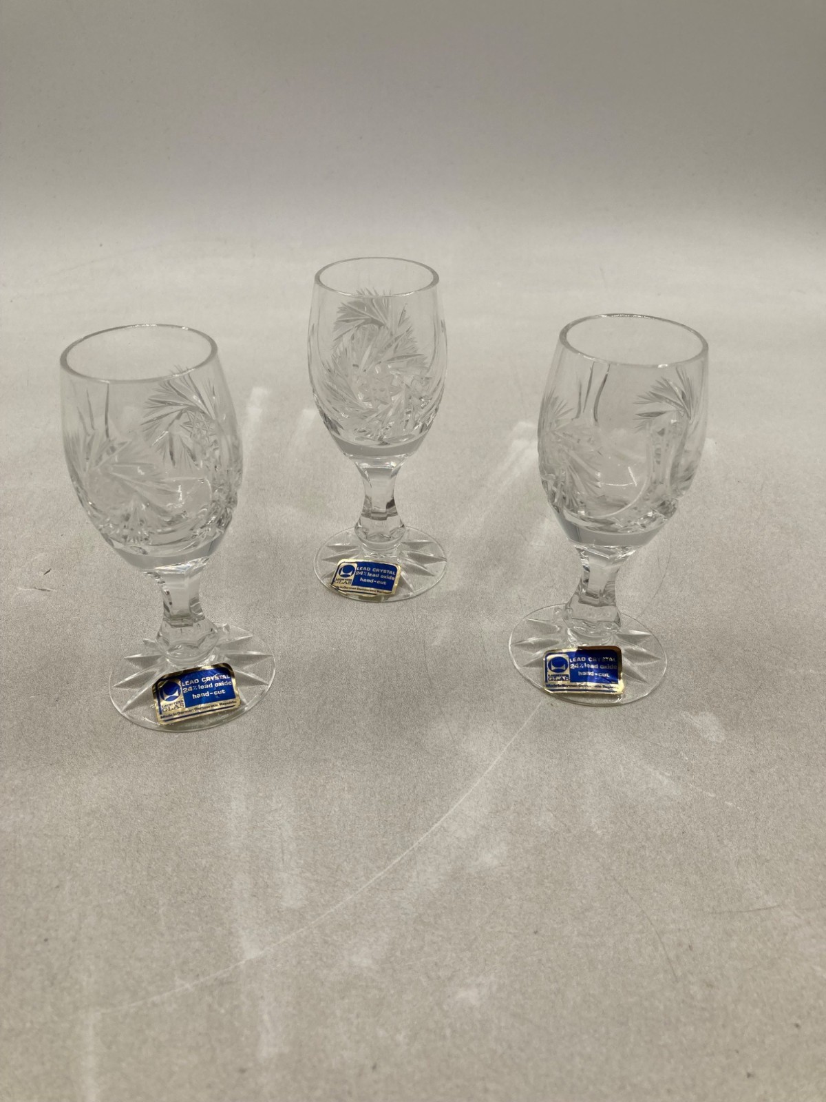 Set Of 3 Lausitzer Glas Lead Crystal Hand-Cut Wine Glasses 24% Lead Oxide