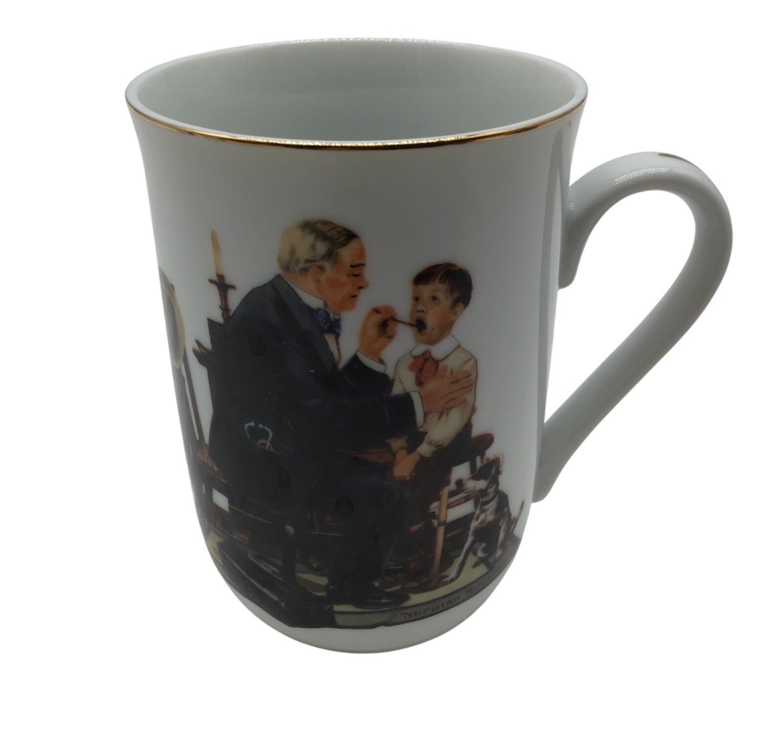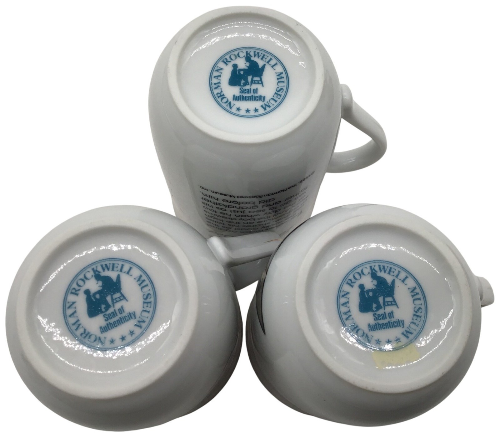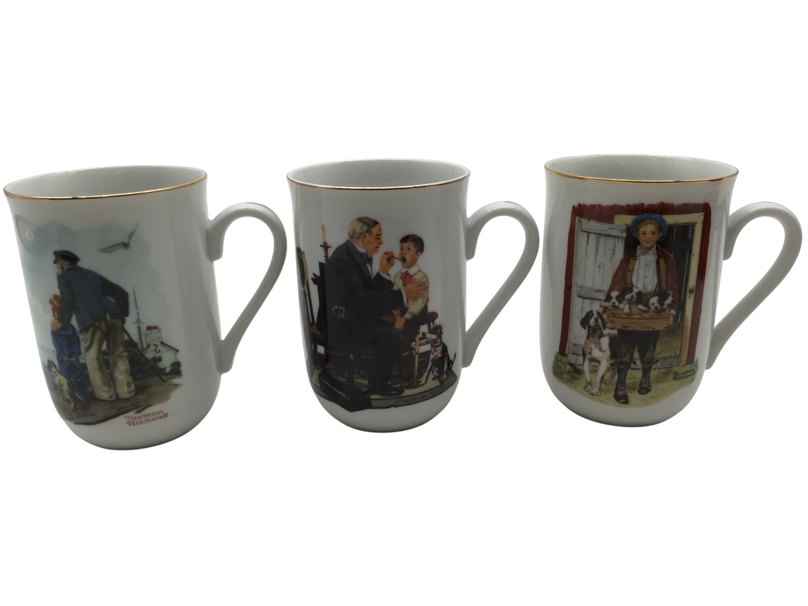 Set Of 3 Norman Rockwell Collection Mugs 1985 Gold Trim Ceramic Collectible Cups