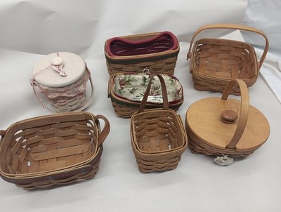 Set Of 7 Assorted Handmade Longaberger Woven Baskets Made In USA 1999-2007
