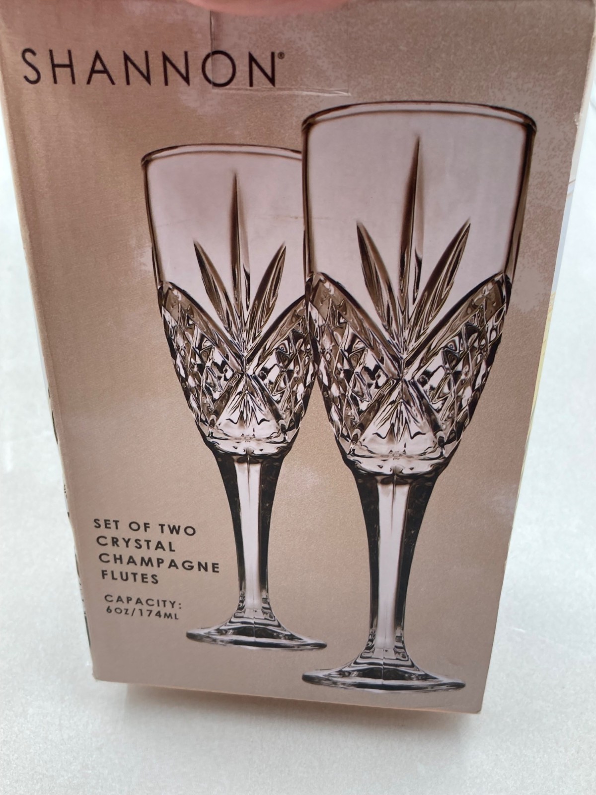 Set Of Two Shannon Crystal Champagne Flutes Capacity 6oz/174ml