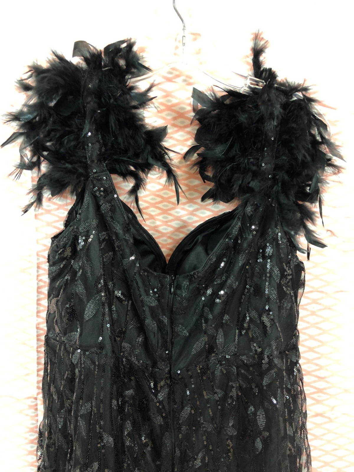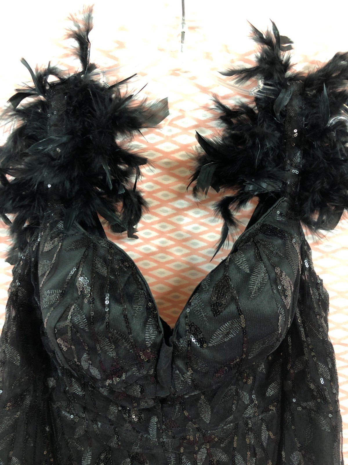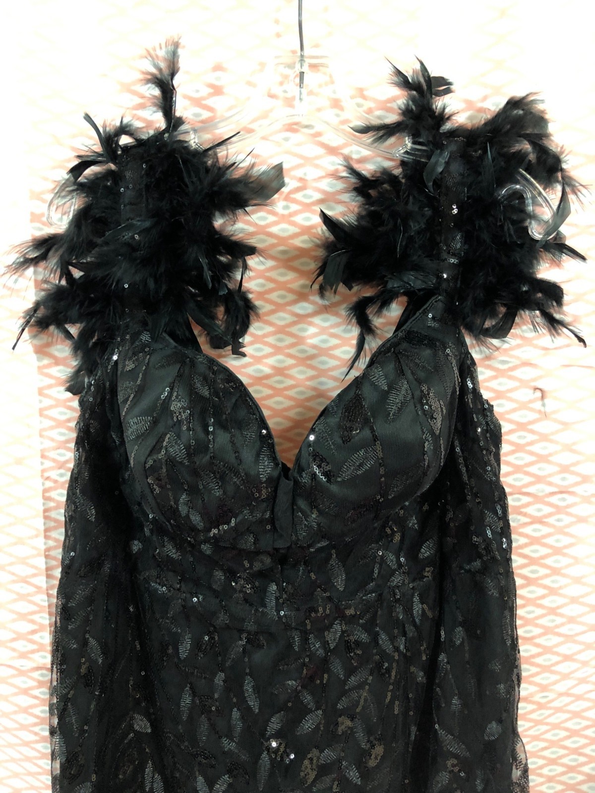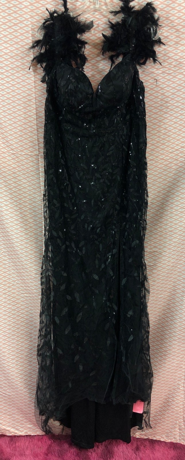 Shein Curve 3XL Black Feather Strap Sequin Evening Gown- NWT
