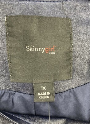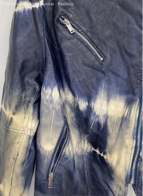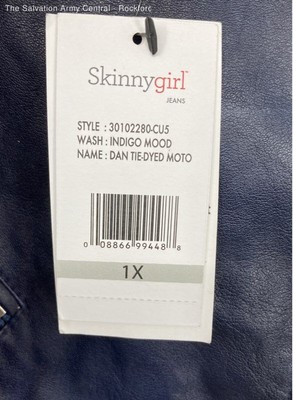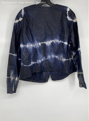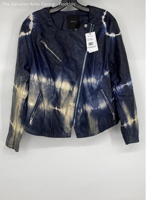Skinnygirl Womens Indigo Blue Tie-Dye Leather Long Sleeve Moto Jacket Size 1X