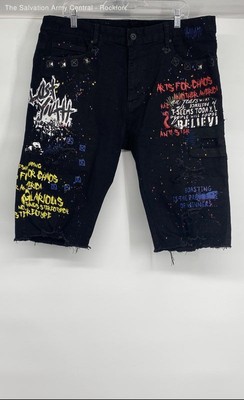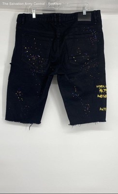 Smoke Rise Mens Black Patch Work Denim Flat Front Casual Bermuda Shorts Size 38