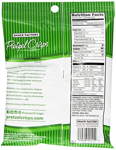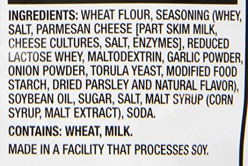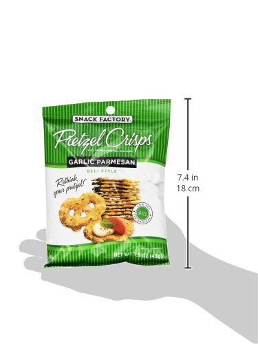 - Thin, crunchy pretzel crackers, baked with savory garlic and Parmesan flavors